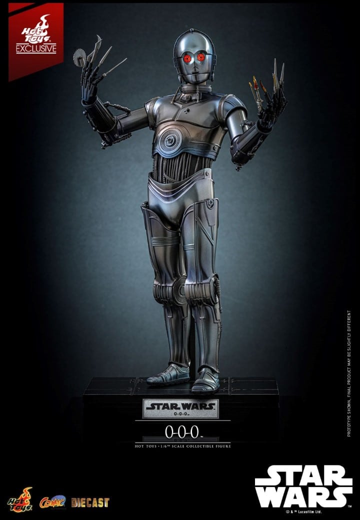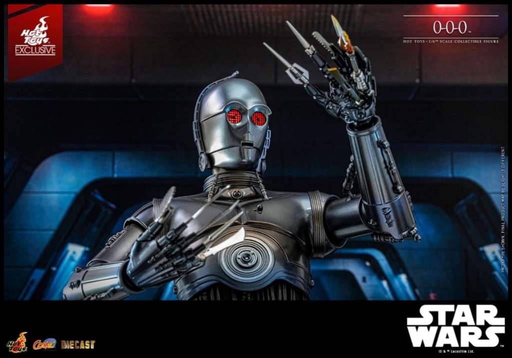 This is a Hot Toys Exclusive item available with limited quantity of 2,000 pieces only in selected markets. The 1/6th scale collectible figure is made with diecast metal material and features detailed mechanical design, skillfully applied metallic paint applications, LED light-up eyes, interchangeable hands for iconic poses, and a figure base. Celebrate the dark side with the new 0-0-0 collectible figure in your collection today! It will be firstly on-shelf on April 27 in selected markets!“