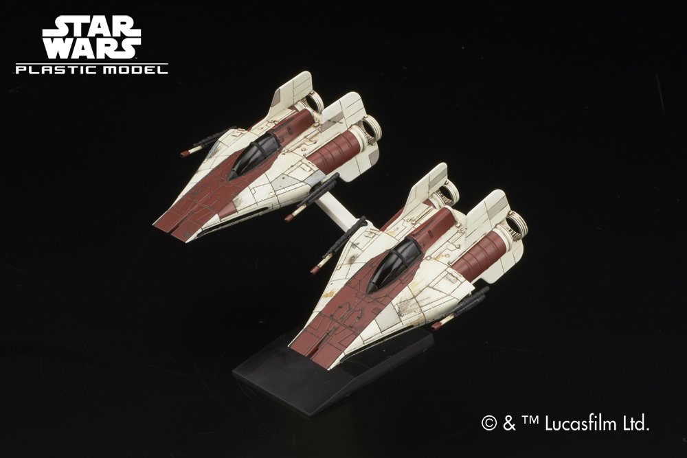 Includes a new display base, letting you display the two Starfighters at chosen angles.