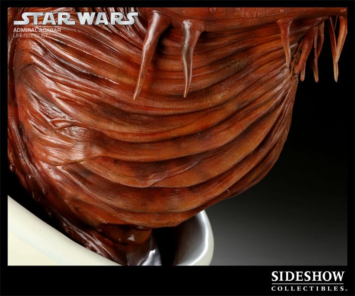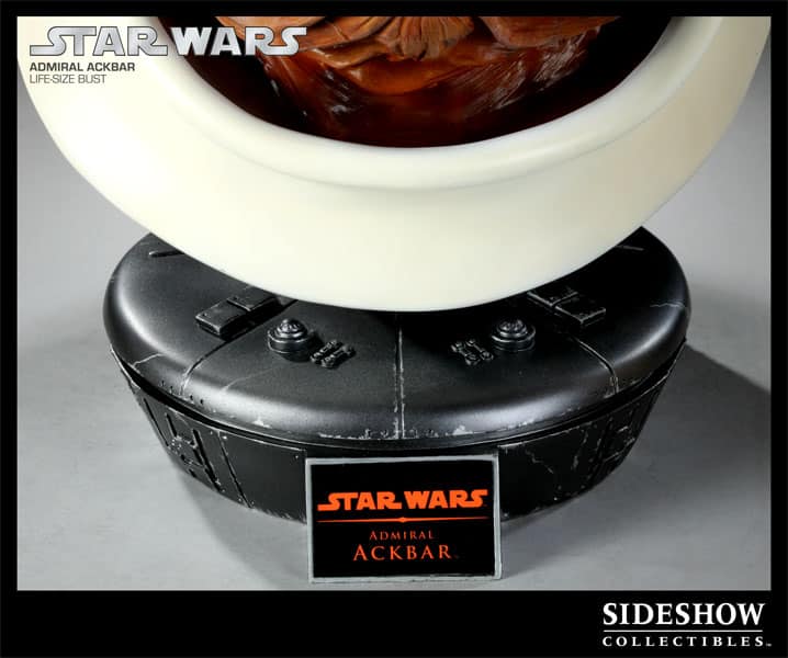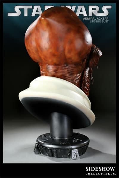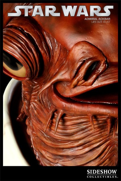 Sideshow is proud to announce the latest addition to the STAR WARS Life-Size Bust series, Admiral Ackbar. The Admiral Ackbar Life-Size Bust captures every detail of the Mon Calamari leader. The bust is cast in durable fiberglass with a polystone skin, hand crafted and hand painted to Sideshow’s museum quality standard. Standing roughly two and half feet high, the Admiral Ackbar Life-Size Bust is sure to become the centerpiece of your STAR WARS collection.
