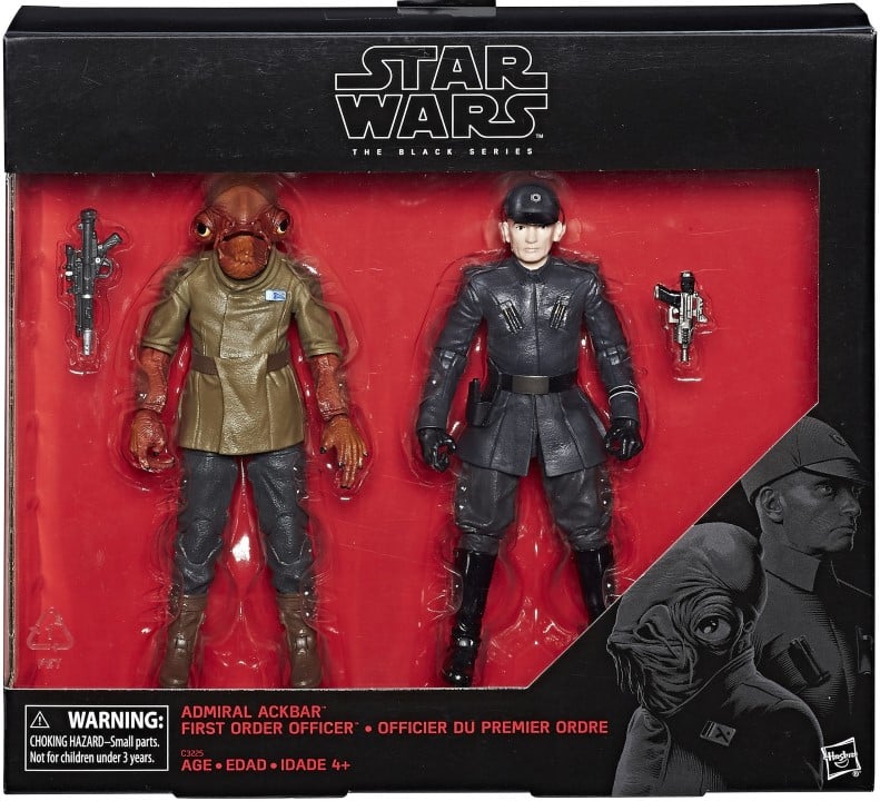 Admiral Ackbar is a veteran of the Clone Wars and the Galactic Civil War and has decades of experience in large scale combat operations. The First Order Officer, on the other hand, shows unwavering allegiance to Supreme Leader Snoke and leads massive armies in the drive to dominate the galaxy.