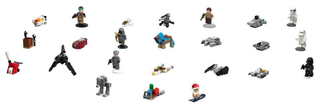 - Enthaltene Fahrzeuge: The Ghost, The Phantom, Stormtrooper transport, Rey’s Speeder, Millennium Falcon, Snowspeeder, Kylo Ren’s Command Shuttle, Y-wing, TIE Striker, Hovertank, AT-ST, Blaster-Kanone, Schneeschleuder und Schlitten mit Boosterraketen!