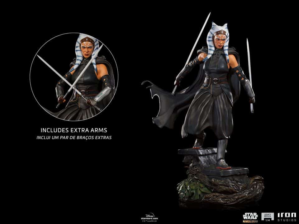 Faithfully replicated in the smallest details, from her costumes, the realistic movement of her cape to the features of actress Rosario Dawson, the statue has an extra pair of arms. This fantastic piece from Iron Studios, already available for Pre-Order, extends the Legacy Replica 1/4 collection derived from the series, which will also have other characters such as Din Djarin (Mando), Grogu (Baby Yoda), Luke Skywalker and R2-D2. In the future, more legendary protagonists of the saga from a galaxy far, far away will be added… Stay tuned on Iron Studios` social media for all the news.