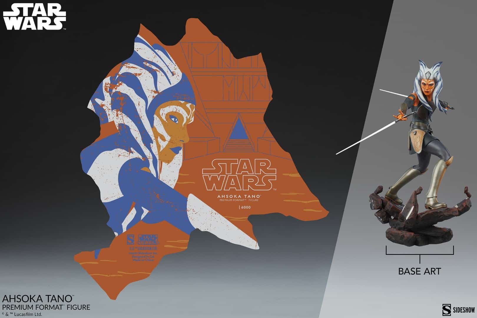 The Ahsoka Tano Premium Format Figure measures 19.5” tall and 14” wide as the Togruta warrior strikes a battle-ready stance on a Malachor-themed base, her iconic dual lightsabers at the ready. Surrounded by the crumbling structure of an ancient temple, Ahsoka steadies herself to use the Force and her former Jedi padawan training to confront the dangers of the dark side across the galaxy.