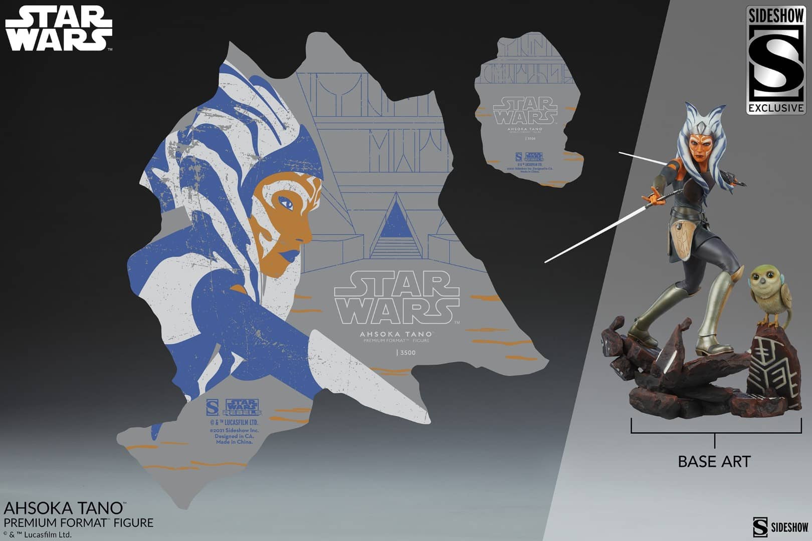 The Exclusive Edition of the Ahsoka Tano Premium Format Figure includes a sculpted Morai proximity piece, depicting her beautiful green convor companion perched on a complimenting Malachor rubble base. Display Morai alongside the Togruta Force wielder with this exclusive accessory only available through Sideshow.