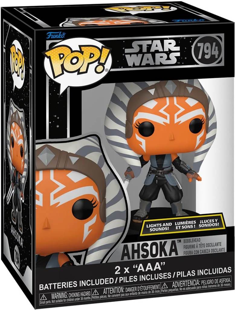 A powerful addition to the light side has arrived! With Lightsaber™ in hand, this Lights and Sounds POP! Ahsoka™ is ready to protect the galaxy—and your Star Wars collection! Vinyl bobblehead is approximately 4.8 in (12.2 cm) tall.