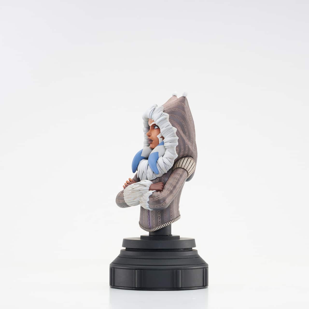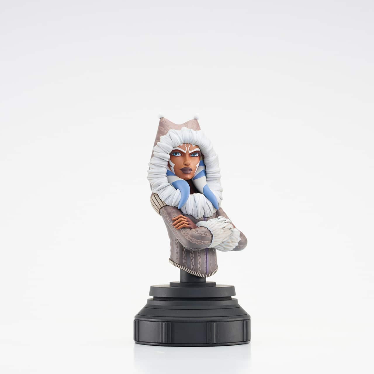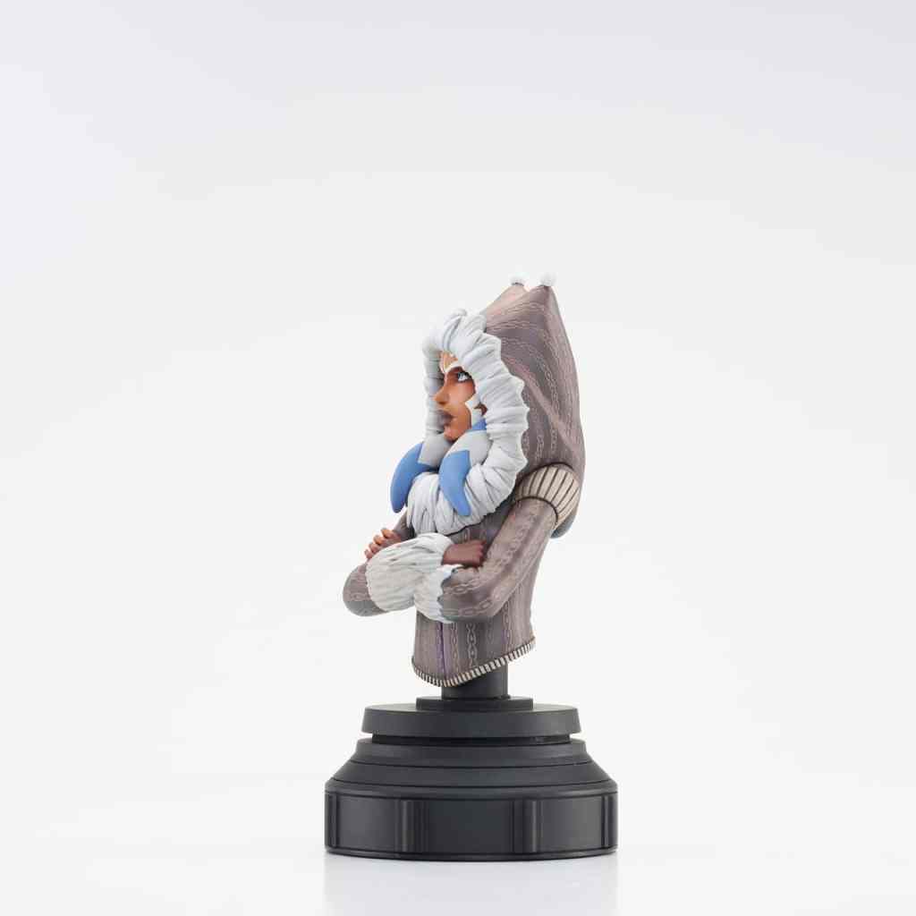 A Gentle Giant LTD release! Bundle up, because the newest animation-inspired Star Wars bust takes us to icy Ilum, where Ahsoka Tano is taking her charges to build their first lightsabers! Based on the episode The Gathering,” this approximately 5-inch mini-bust of Ahsoka features animation-accurate sculpting and detailed paint applications. It comes packaged in a full-color window box, with a numbered certificate of authenticity. Limited to 3,000 pieces.