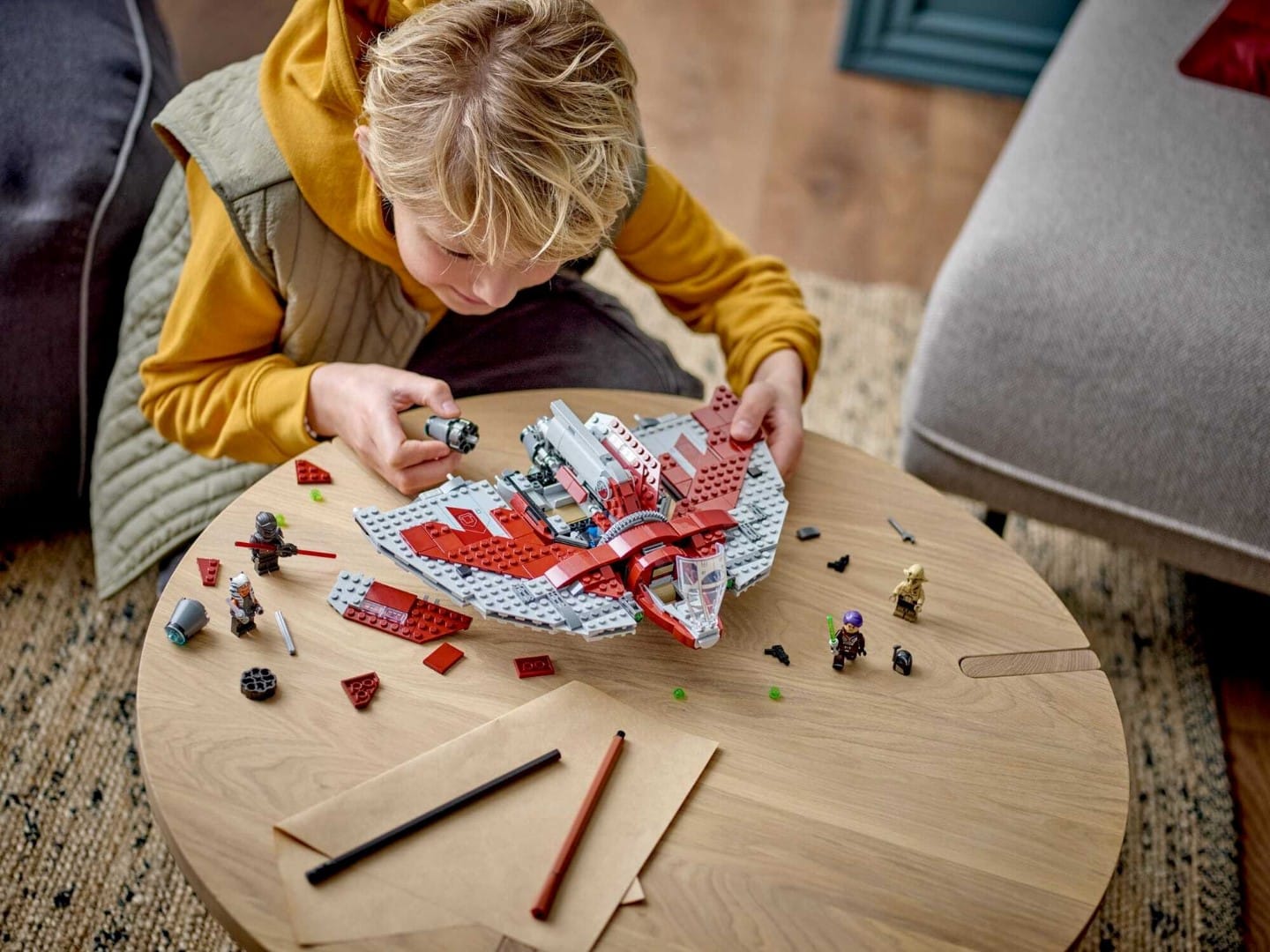 Junge Fans von Star Wars: Ahsoka können mit diesem LEGO® Modell von Ahsoka Tanos T-6 Jedi Shuttle eigene Abenteuer darstellen