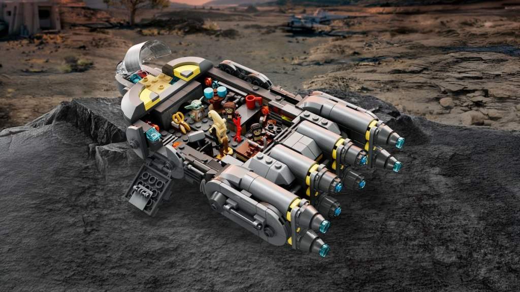 • 3 LEGO® STAR WARS™ FIGUREN: Steck die LEGO Figur Grogu und 2 Anzellaner insCockpit oder in den Hauptrumpf des Sternenschiffs