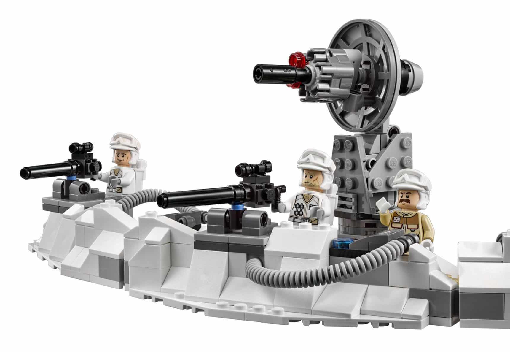 Stürze dich ins Gefecht um Hoth! Das Set enthält einen Mauerabschnitt der Rebellenbasis mit Sprengtüren, Verteidigungsgräben, eine Ionenkanone, einen Snowspeeder, 14 Minifiguren und vieles mehr.