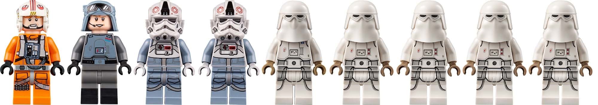 Die enthaltenen Minifiguren sind Luke Skywalker im Snowspeeder-Outfit, General Veers, zwei AT-AT Driver, ein Snowtrooper Commander und vier Snowtrooper. Letztere kommen allesamt mit verschiedenen Hautfarben und Gesichtsausdrücken, jedoch in gleicher Rüstung.
