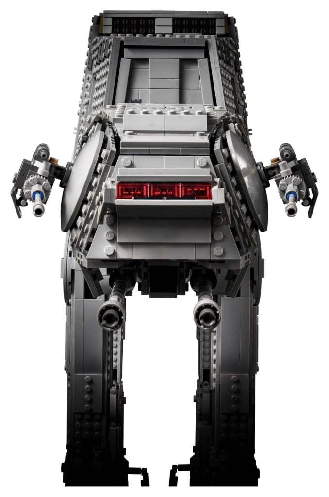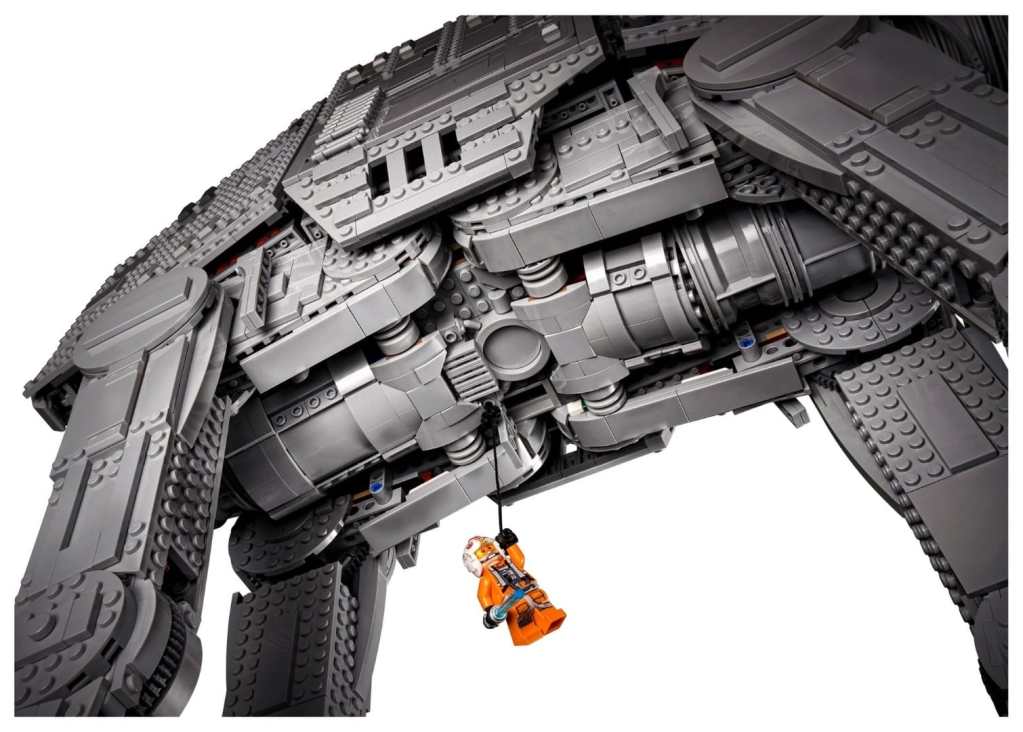 Dank abnehmbarer Seitenteile lässt sich das gesamte Innenleben und sogar der bewegliche Kopfteil des 75313 AT-AT bespielen und bietet Platz für insgesamt 40 Minifiguren und 4 Speeder Bikes. Das Set erscheint also im Minifiguren-Maßstab und entspricht somit der realen Größe des imperialen Läufers aus The Empire Strikes Back.