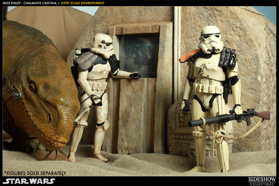 A welcome oasis in the middle of the flaming desert of Tatooine, the Mos Eisley Cantina hosts bizarre and sometimes dangerous patrons from Ithorians to Rodians.