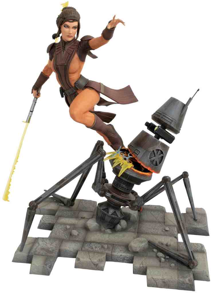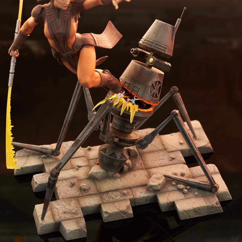 The Jedi Knight Bastila Shan became a fan-favorite in the days of the Old Republic, and now she’s finally available from Gentle Giant, Ltd.! This dynamic, approximately 10-inch sculpture depicts Shan using her double-bladed lightsaber to slice through a Guardian Droid in the Dantooine ruins. Featuring detailed sculpting and paint applications, it is made of high-quality PVC and comes packaged in a full-color window box.