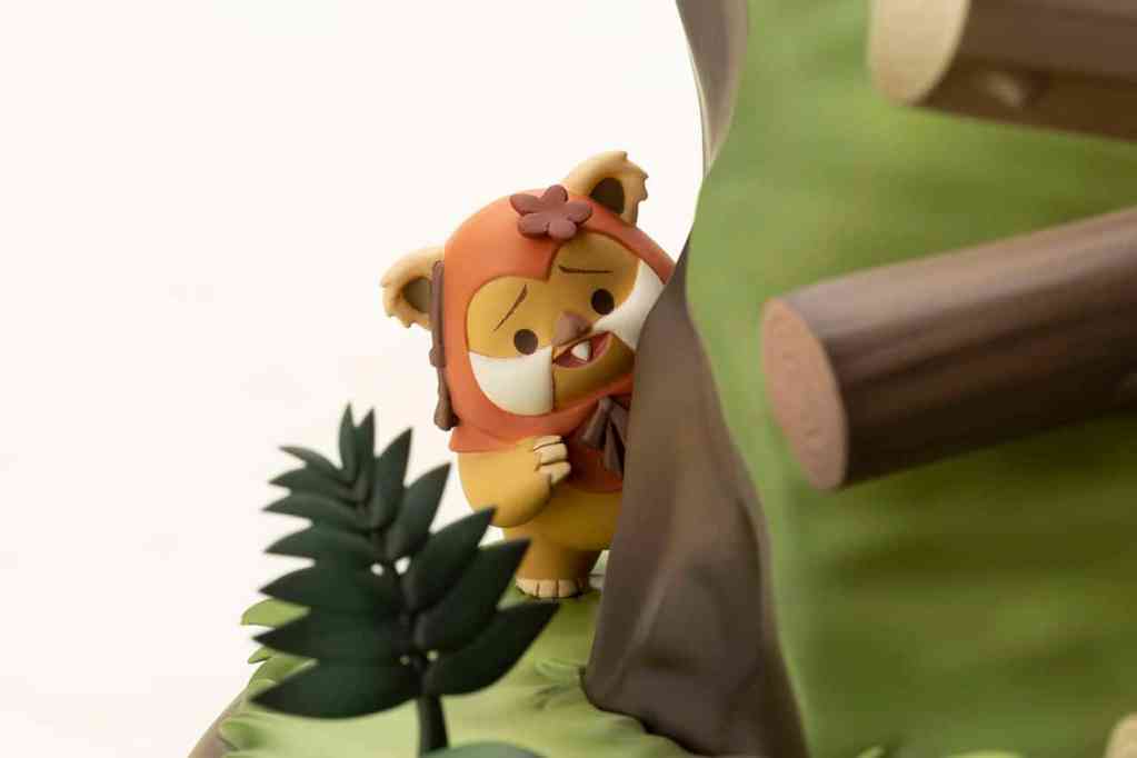 “I wanted to do something you cannot easily express in an illustration,” Sasaki says. “To make sure the statue can be appreciated from all angles, we came up with the diorama-style for this project. With Ewoks, I think the most iconic scene is where they fight against the AT-STs. So I did a sketch based on that scene, and revised that together.”