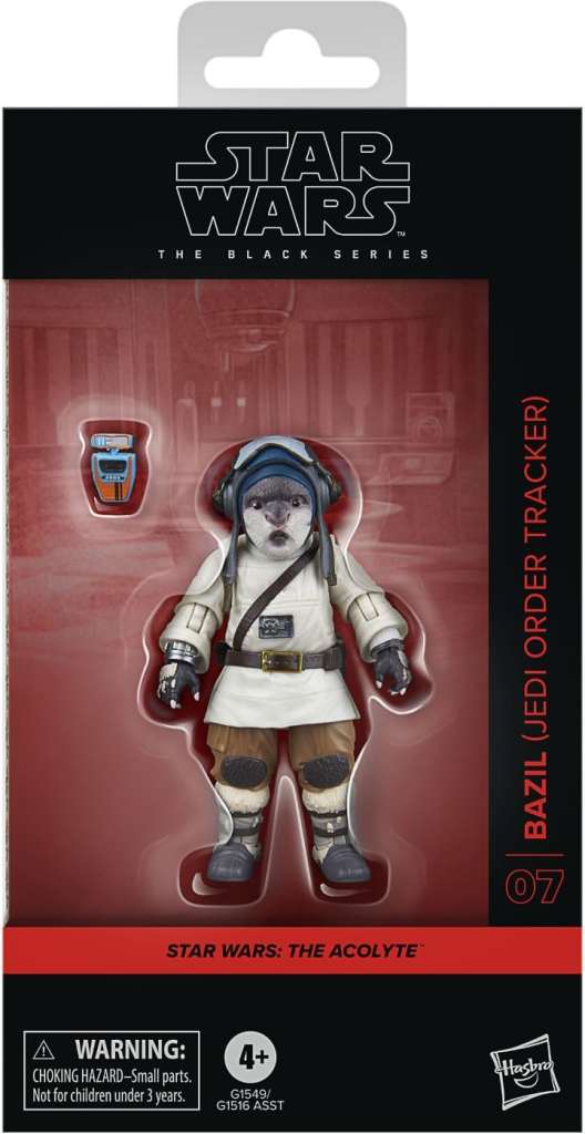 A Tynnan tracker and ally of the Jedi Order, Bazil has a hypersensitive nose that can detect his quarry at a distance, and he is tenacious in his hunt. STAR WARS: THE BLACK SERIES includes 6-inch action figures, vehicles, and roleplay items from the 40-plus-year legacy of the STAR WARS Galaxy, letting fans create galactic scenes with a faithfulness to STAR WARS comic books, movies, and series. The first release of this character in THE BLACK SERIES, this 6-inch scale figure is detailed to look like Bazil (Jedi Order Tracker) from the STAR WARS: THE ACOLYTE live-action series. Display STAR WARS fandom on your shelf with window box packaging featuring sleek character design. Comes with Pip Droid accessory.