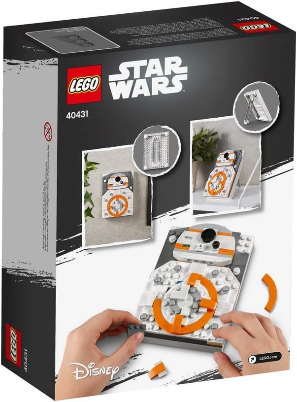 - LEGO® Brick Sketches™ BB-8™ ist 13 cm hoch, 9 cm breit und 3 cm tief. Das Porträt erweist sich als ein spektakuläres Schaustück für den Kaminsims, das sich aber auch an dem integrierten Haken aufhängen lässt.