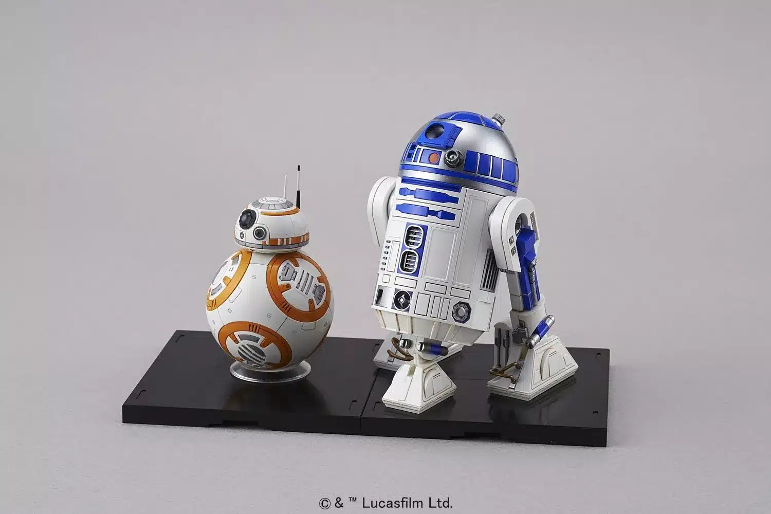 Der Modellbausatz der beiden Astromechs BB-8 und R2-D2 im Maßstab 1:12 beinhaltet insgesamt 180 Bauteile. Bei dem fertigen Modell von BB-8 ist die Kugel drehbar gelagert; bei R2-D2 kann in das mittlere Bein ein- und ausgefahren werden. Darüber hinaus sind mehrere aus den Filmen bekannte Gimmicks (Werkzeuge, Antennen) enthalten, die optional verbaut werden können. Enthalten sind außerdem zwei anreihbare Standplatten.