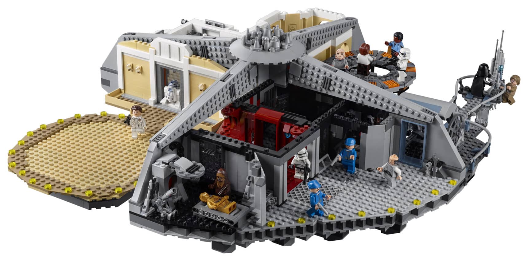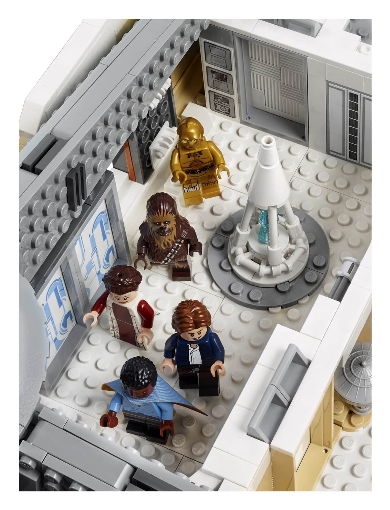 • Zu den besonderen Details, die im Oktober 2018 neu herauskommen, zählen Leias rotes Kleid, der Corellianische Blutstreifen von Han, Lukes dunkelbraunes Dagobah-Outfit, der verzierte Kopf des Ugnaught sowie die Cloud Car-Piloten.