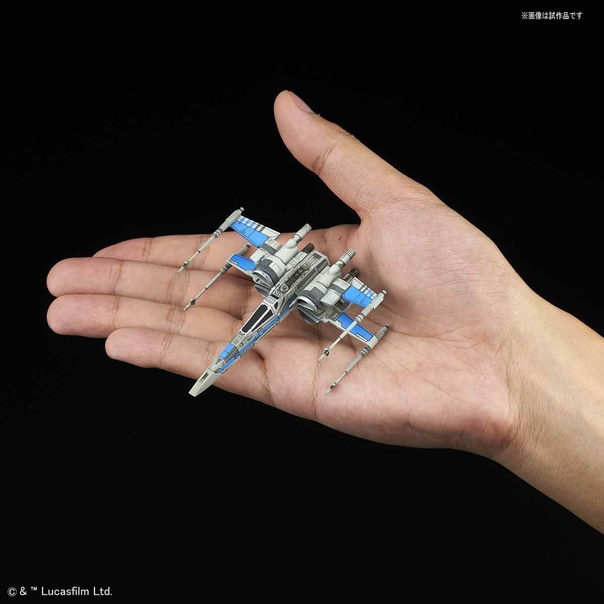 This X-Wing Fighter model kit from Bandai is the 11th issue of a brandnew series of Star Wars model kits with a completely new concept: The finished model is only 8.7 cm small and fits into a palm, but nevertheless has a stunning grade of detailing. Once again, Bandai proves their incredible kit-fabricating skills!