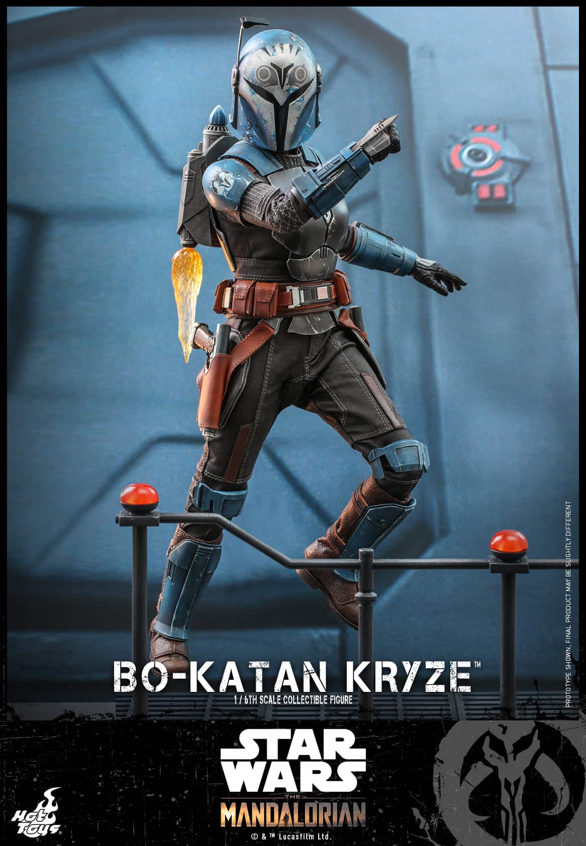 The Bo-Katan Kryze collectible figure features newly developed head sculpt with remarkable likeness, skillfully crafted Mandalorian helmet and armor with weathering effects, meticulously tailored and form-fitting under-suit, a jetpack with booster fire effects, a pair of blasters, a dagger blade, diorama accessory and a themed display stand!
