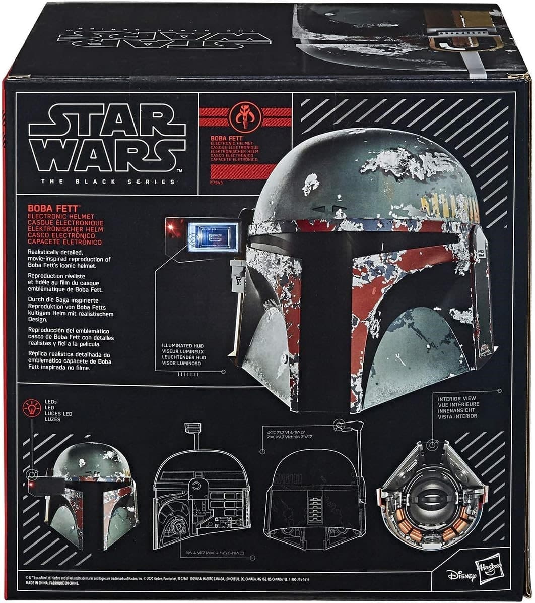 Aus Hasbros „Black Series“ kommt dieser fantastische Helm von Boba Fett. Der Helm kommt mit vielen authentischen und filmgetreuen Details und verfügt außerdem über LED-Leuchtfunktionen und ein eingebautes HUD.