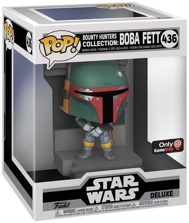 This collectible is part of the Bounty Hunters Collection by Funko, specifically crafted to feature iconic characters in highly detailed vinyl form. Each figure, including Boba Fett, has a unique stand and backdrop that recreates memorable moments from the Star Wars saga. The product stands approximately 3.75 inches tall, made of high-quality vinyl, making it a durable and sought-after piece for Star Wars and Funko enthusiasts.