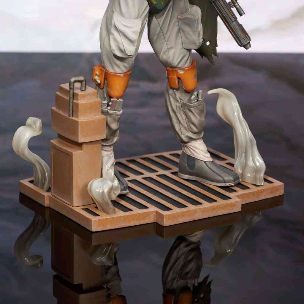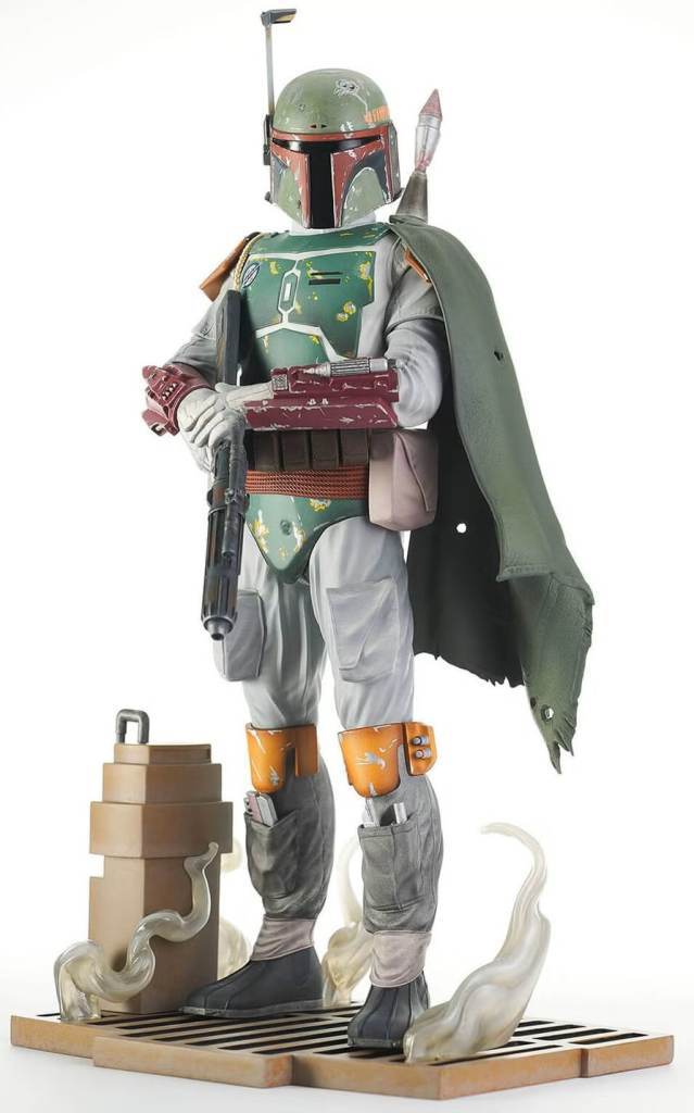 Boba is back! The recently revived bounty hunter is captured at his moment of triumph, in Star Wars: Return of the Jedi, in this all-new 1/6 scale statue. Standing in Jabba’s throne room, blaster at the ready, Boba Fett measures approximately 12 inches tall and features detailed sculpting and paint applications. Limited to only 1,000 pieces, it comes packaged with a numbered certificate of authenticity in a full-color box. Sculpted by Joe Menna!