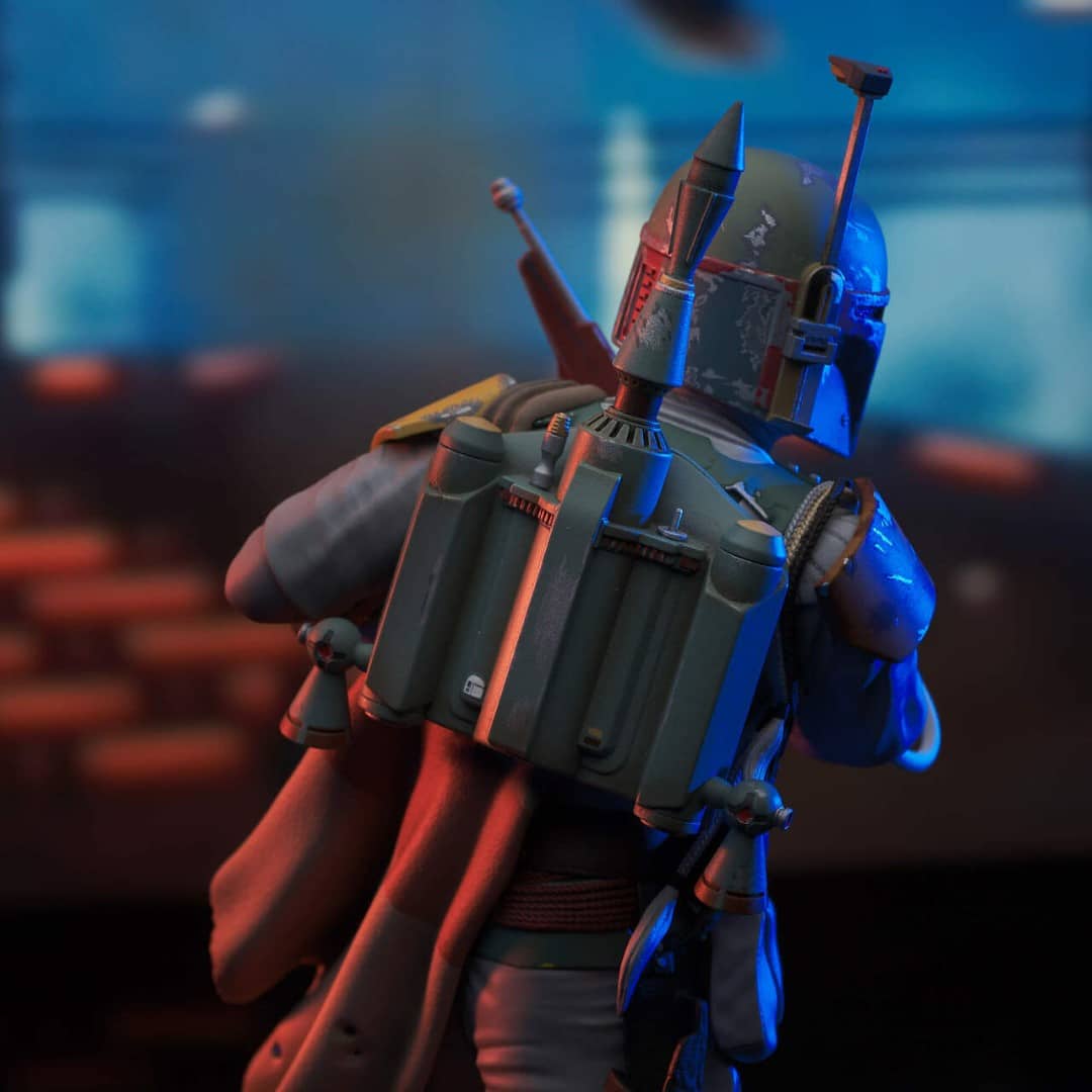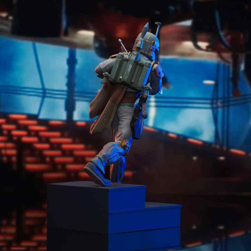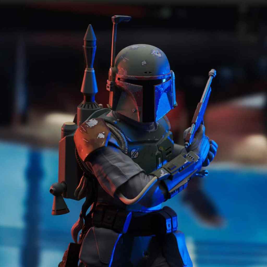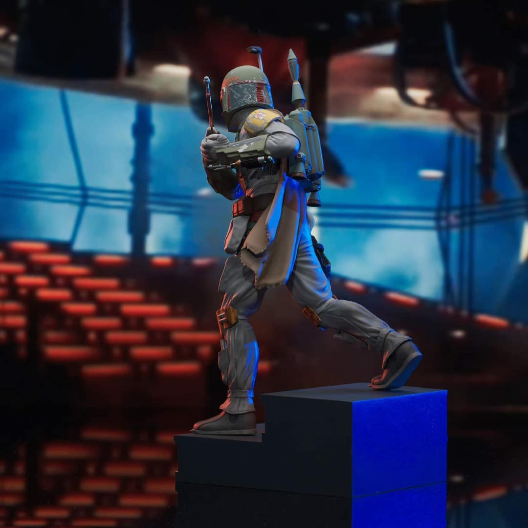A Gentle Giant Ltd. release! He needs Han Solo alive! The bounty hunter Boba Fett gets an all-new statue in the Premier Collection line, based on his appearance in Star Wars: The Empire Strikes Back! This exclusive sculpture depicts Boba Fett descending the steps in the carbon freezing chamber, with his blaster drawn. Standing approximately 11 inches tall, this resin statue features detailed sculpting and paint applications, and is limited to only 1000 pieces.