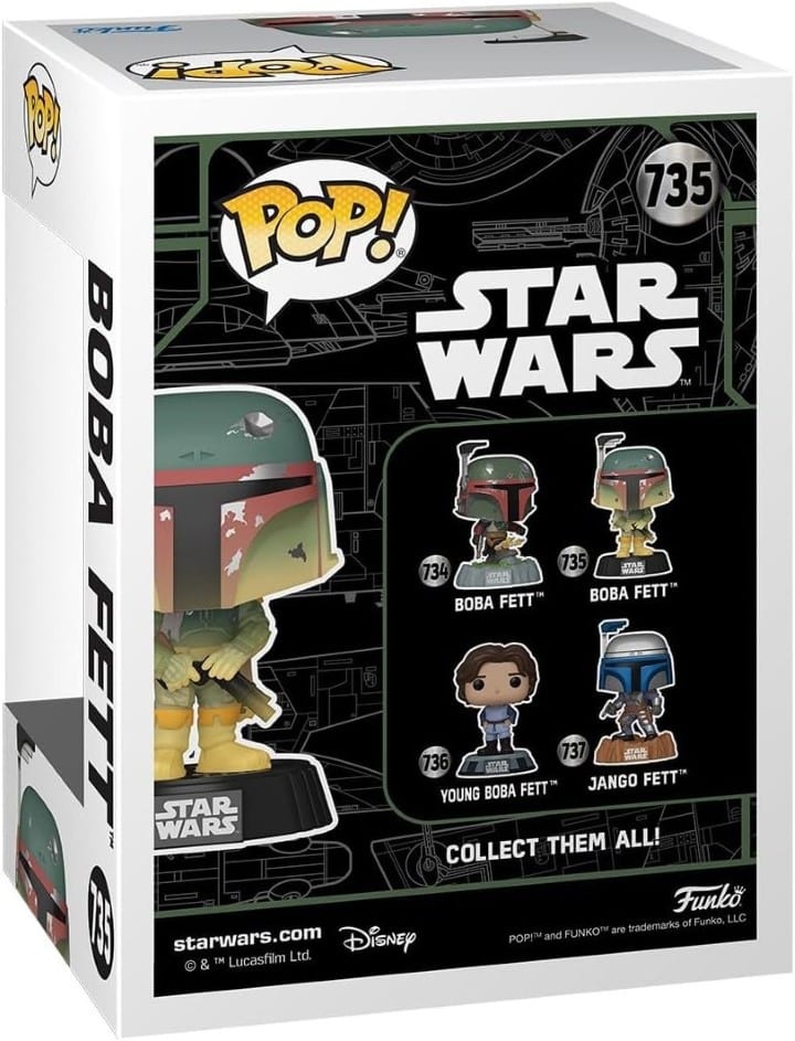 Celebrate the Fett Legacy with Pop! Boba Fett™! This bounty hunter has tracked his quarry to the Cloud City, where he awaits his prize in the carbonite chamber. Complete your Star Wars™ lineup by making Pop! Boba Fett™ with glow-in-the-dark details the next addition to your collection!