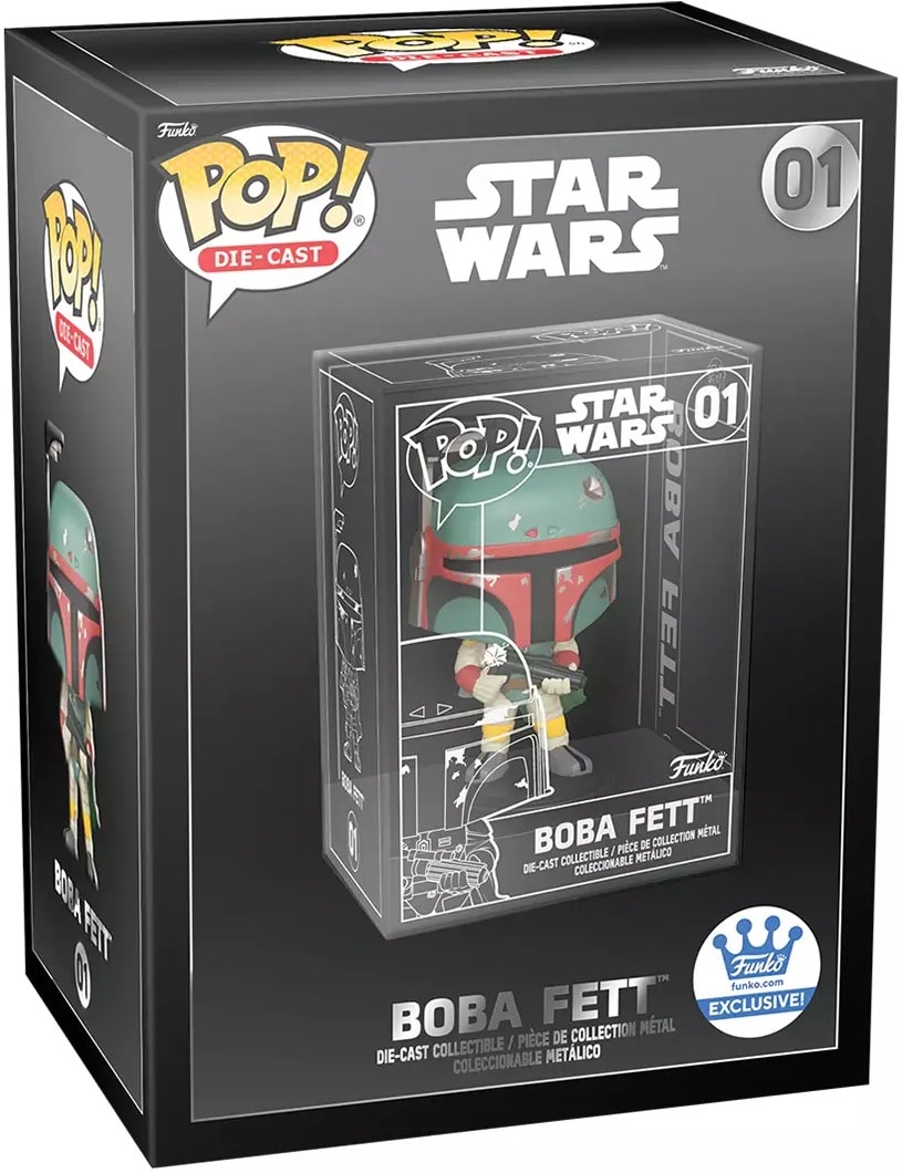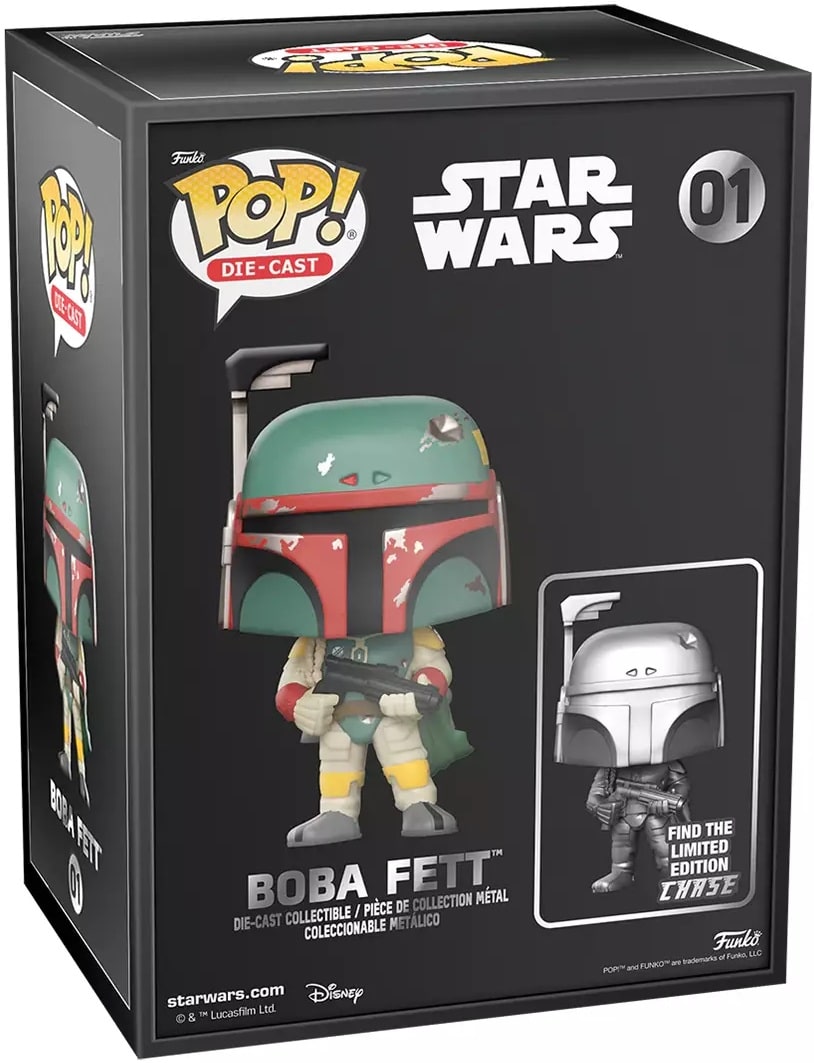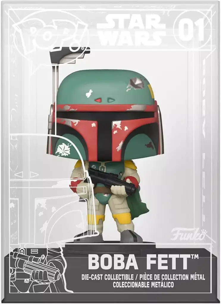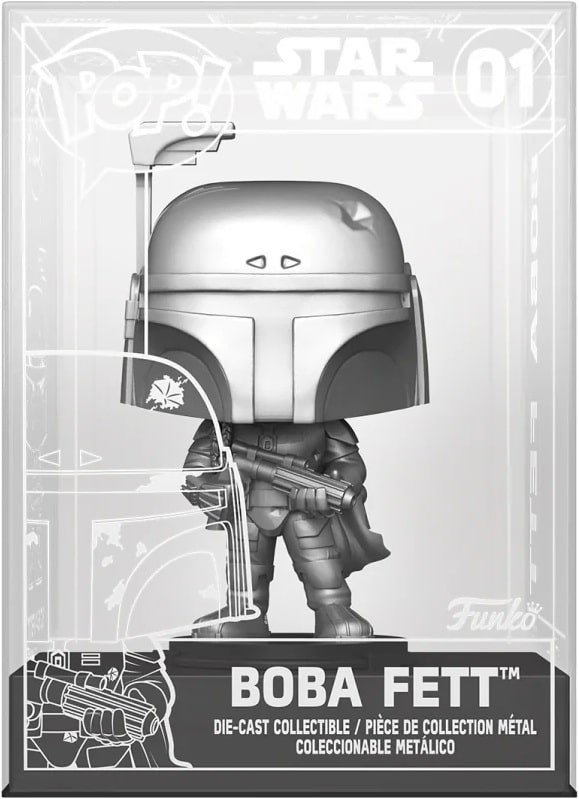 Start your Die-cast Pop! collection with Star Wars’ Pop! Boba Fett, the unaltered clone/son of Jango Fett, who re-emerges from the shadows wearing his father’s famous armour and carrying a blaster. Celebrate the most stellar fandom of all with the Die-cast Boba Fett Pop! to crown your lineup. Die-cast figure is approximately 10 cm tall.