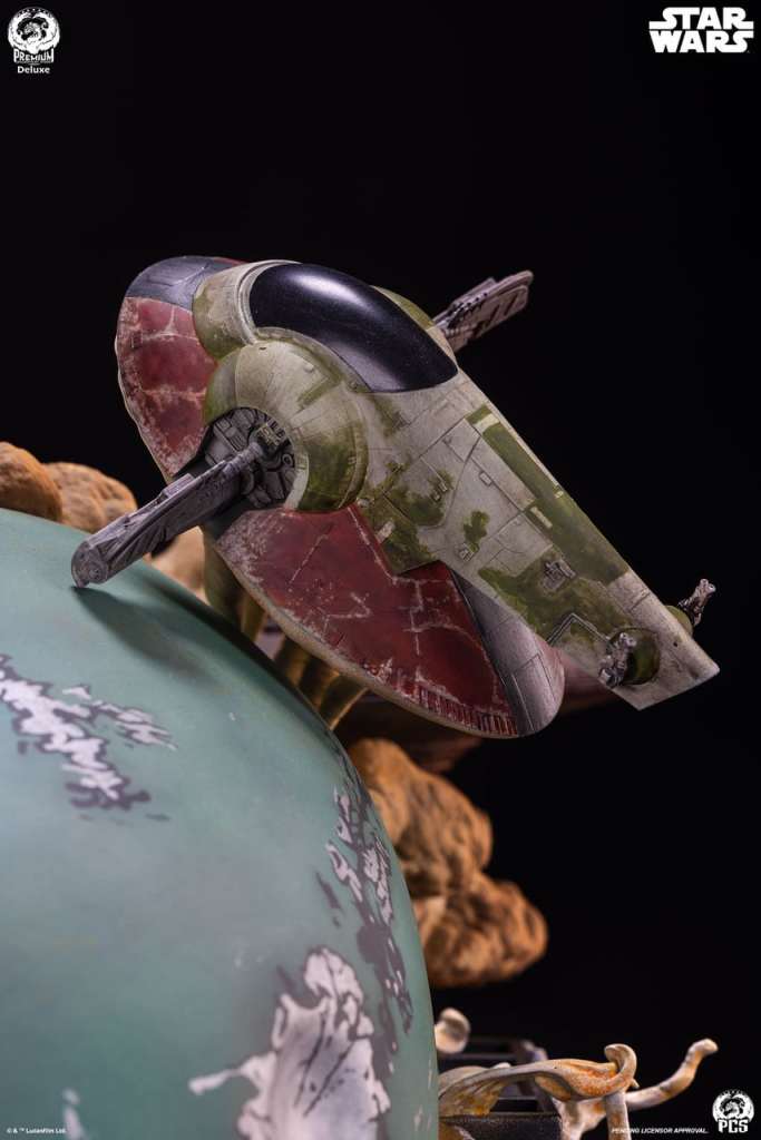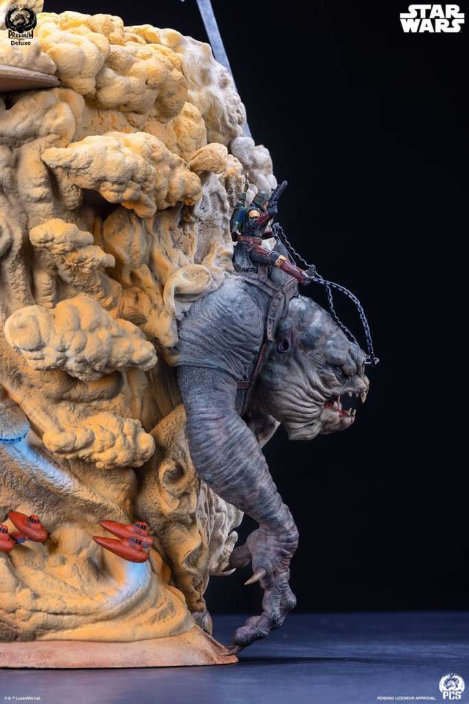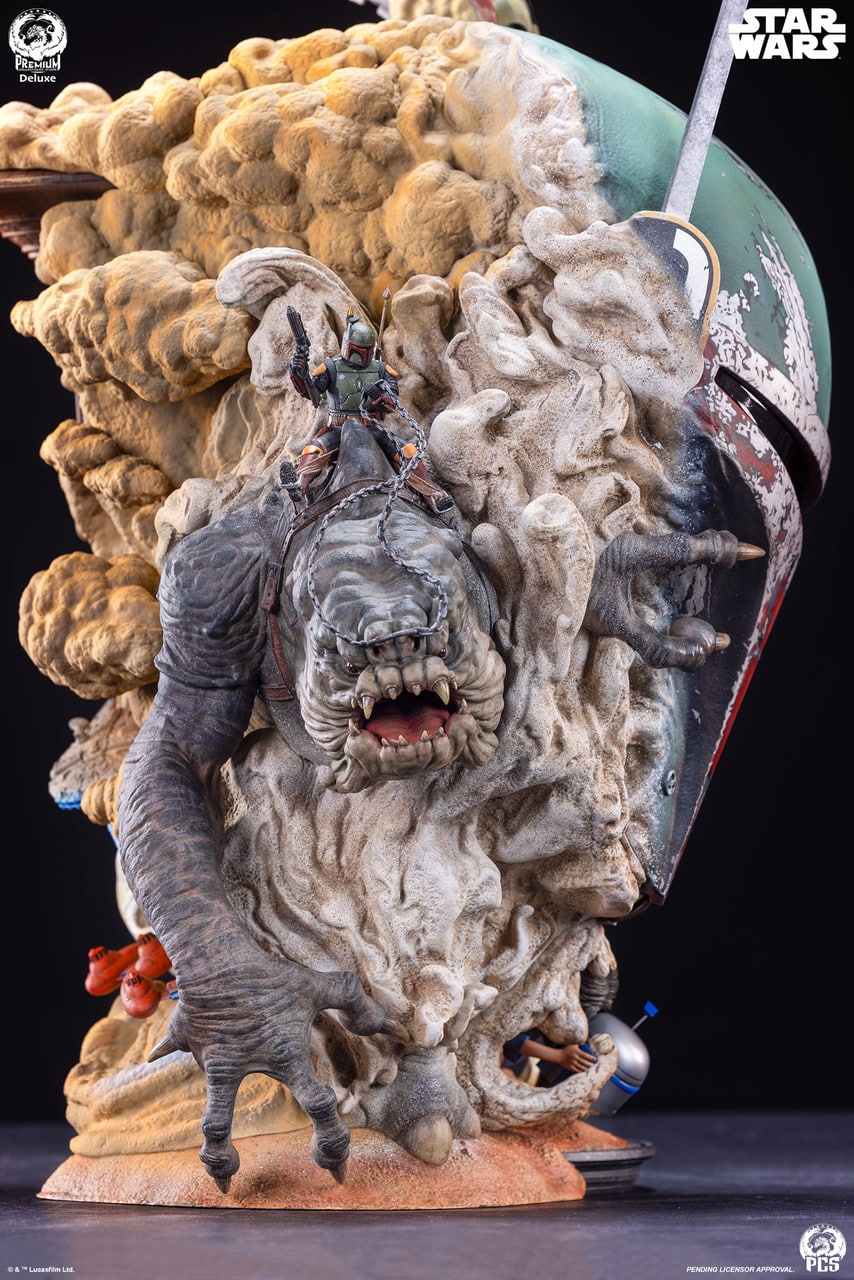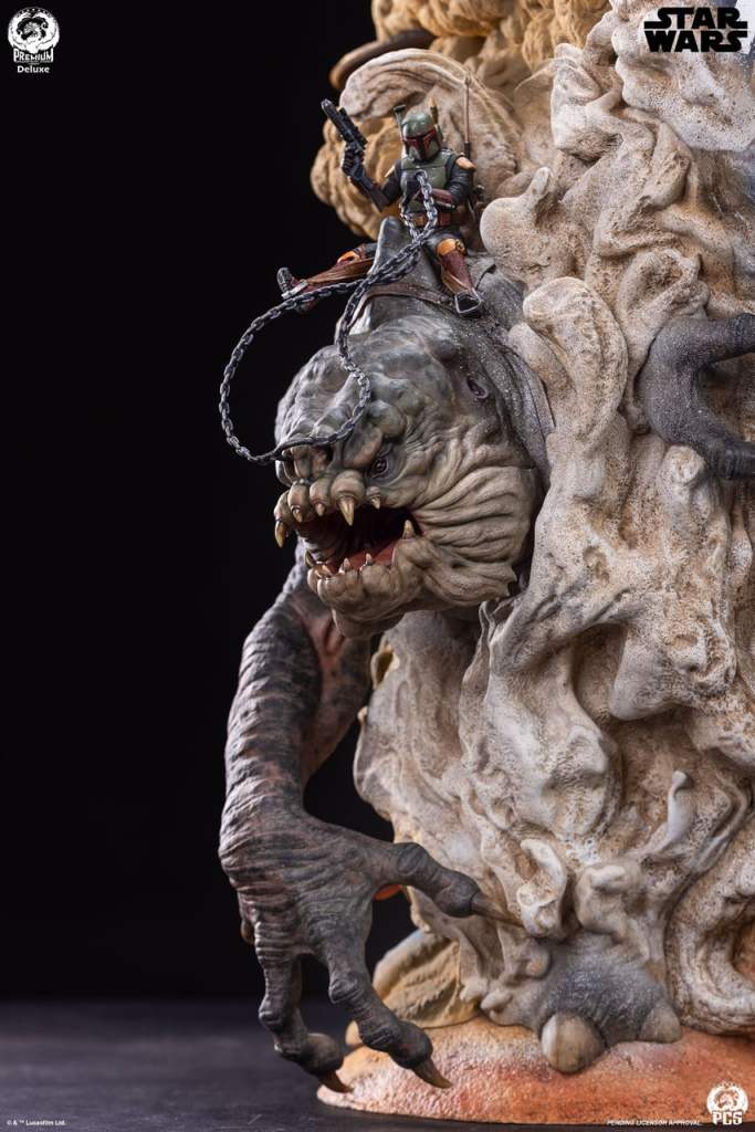 The Deluxe Edition also includes an optional addition, a swap-out sculpted element depicting an older Boba Fett riding atop the fearsome Rancor beast.
