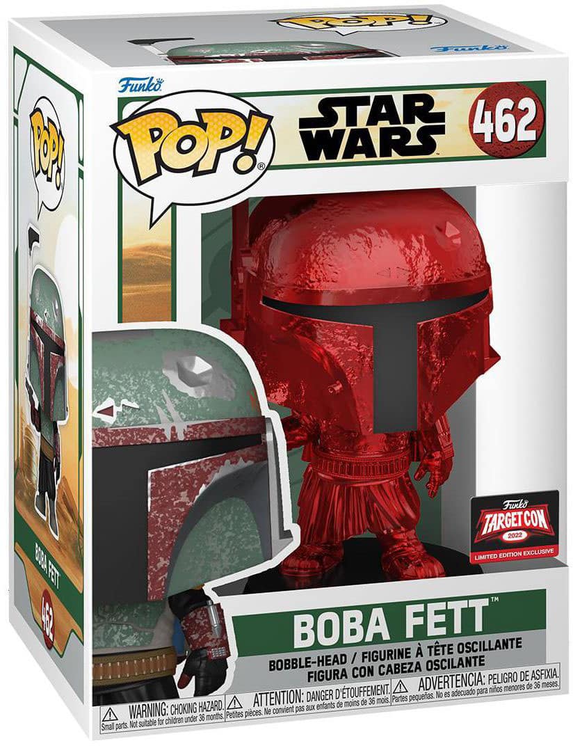 Celebrate the most stellar fandom of them all with the exclusive Funko Pop! Star Wars Boba Fett (Red Chrome).