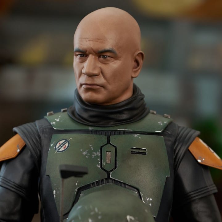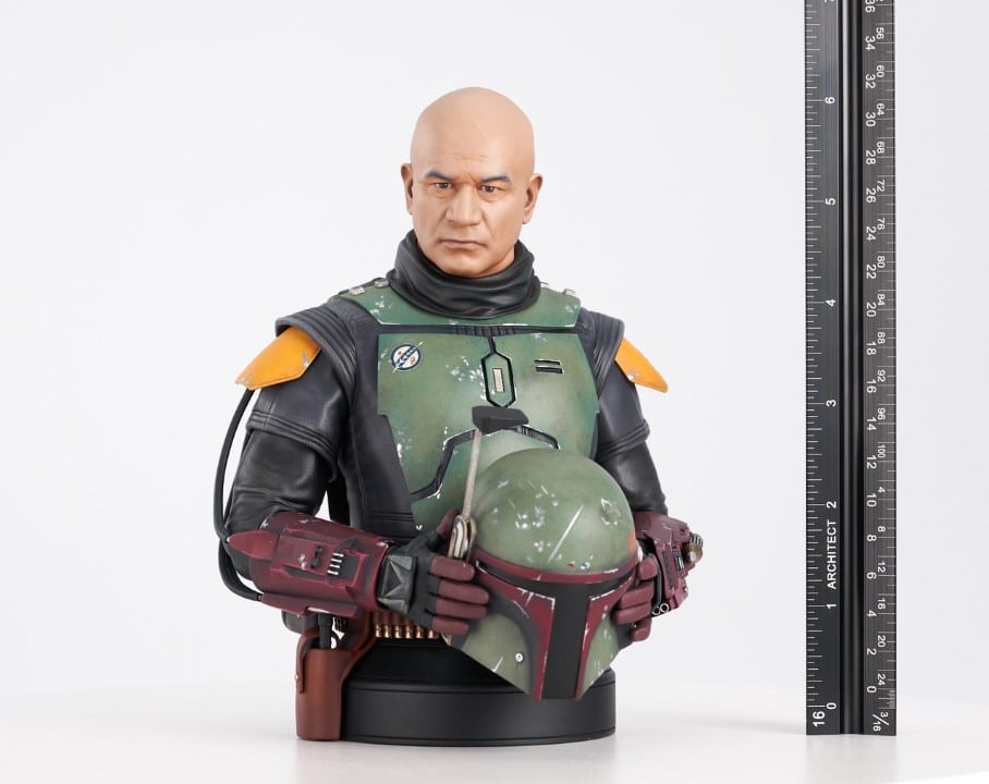 A Gentle Giant LTD release! The legend, unmasked! Boba Fett returns to the 1/6 scale bust line in a new, unhelmeted replica. Based on his likeness and appearance in The Book of Boba Fett, this approximately 6-inch bust of the Mos Espa daimyo sits atop a black pedestal base and is limited to only 2000 pieces. It comes packaged in a full-color box with a numbered certificate of authenticity.