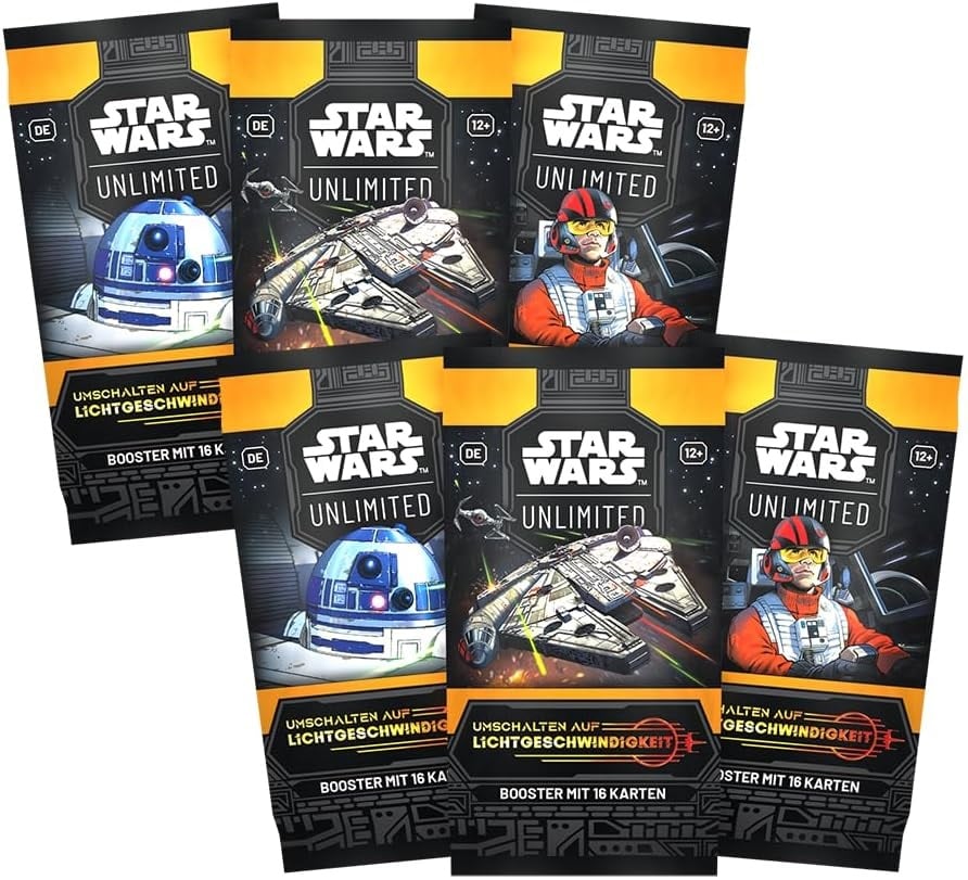 Erweitere deine Sammlung mit Umschalten auf Lichtgeschwindigkeit-Boostern! In jedem Booster findest du 16 Karten, die du deiner Sammlung hinzufügen kannst, darunter mindestens 1 Anführerkarte, 1 seltene oder legendäre Karte sowie 1 Premium-Foilkarte.