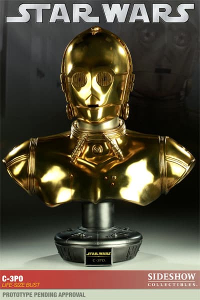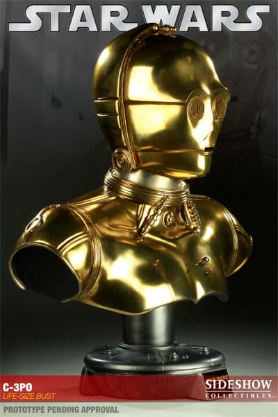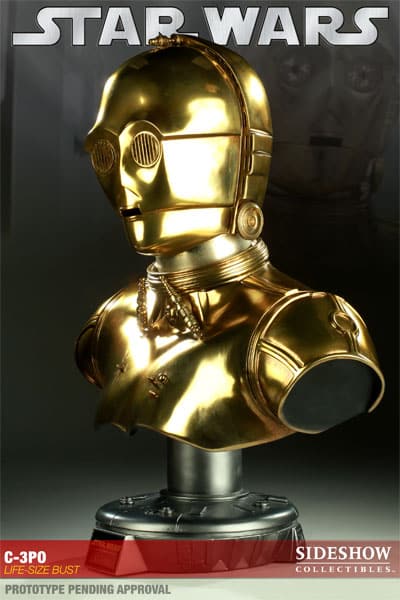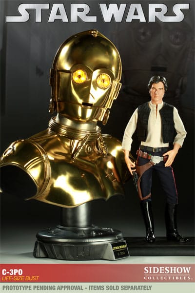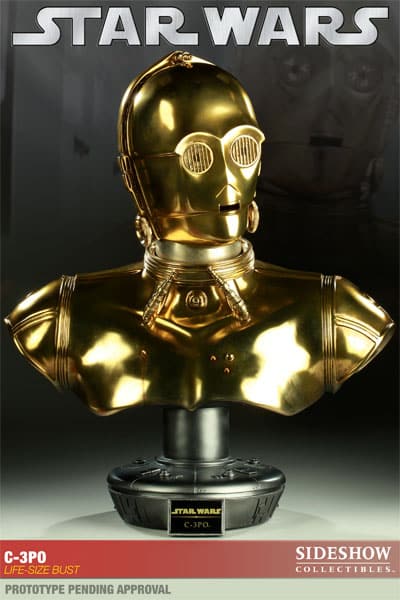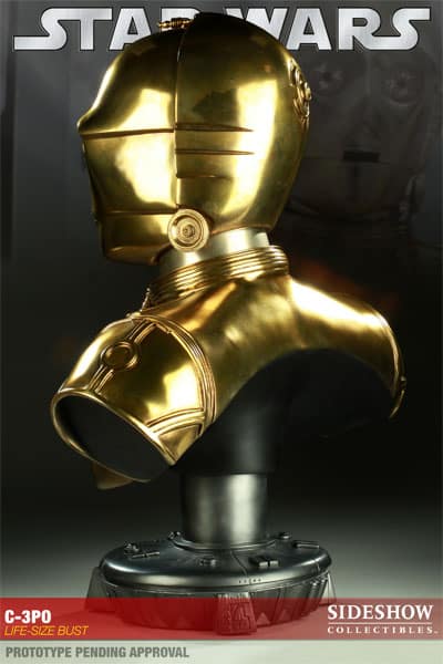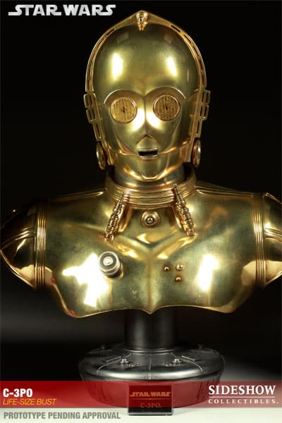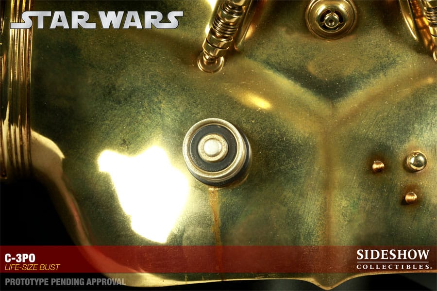 Sideshow Collectibles is proud to announce the C-3PO Life-size Bust, created in conjunction with renowned robot craftsman Fred Barton. Each piece is individually painted and hand-finished, each with its own unique quality and detail that is the trademark of a handcrafted Sideshow Collectibles product. Crafted of fiberglass and polystone and complete with light-up eyes* and a detachable magnetic restraining bolt accessory, the C-3PO Life-size Bust is sure to become the premier addition to any Star Wars display.