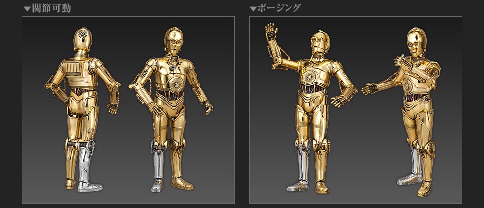 - C-3PO wird aus vergoldetem Kunststoff geformt – außer dem rechten Fuß, der Silber ist.