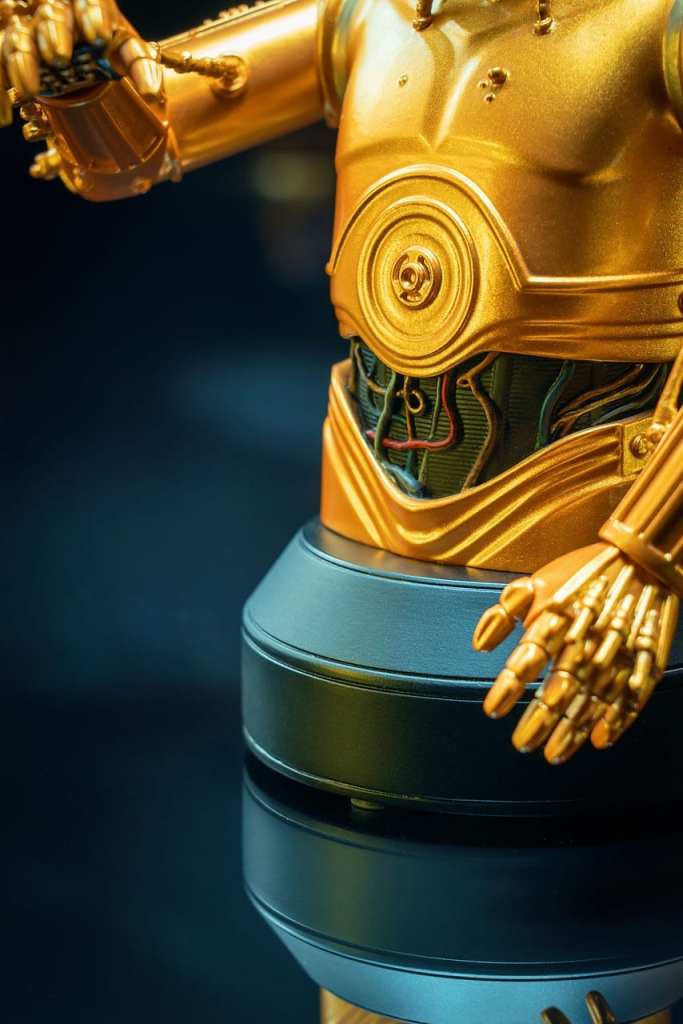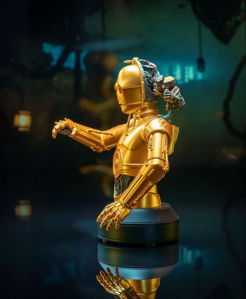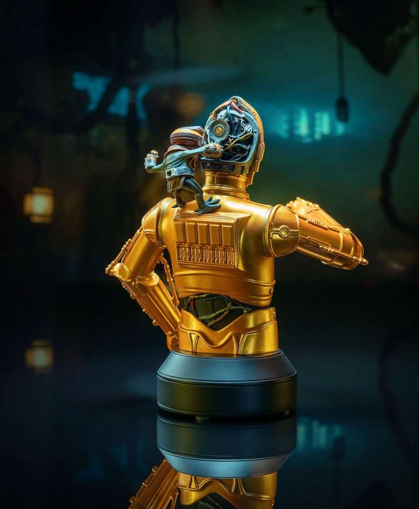 C-3PO gets a tune-up in the newest 1/6 scale Star Wars bust from Gentle Giat Ltd.! With Babu Frik on his shoulder and his wiring exposed to the world, C-3PO measures approximately 6 inches tall, and is a necessary addition to any Star Wars bust collection. Limited to only 1,500 pieces, it comes packaged in a full-color box with a numbered certificate of authenticity.