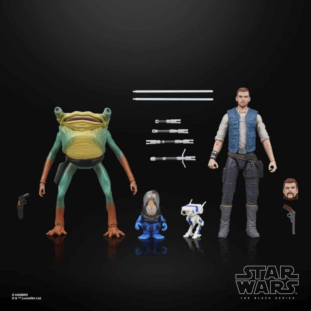 STAR WARS: THE BLACK SERIES includes 6-inch action figures, vehicles, and roleplay items from the 40-plus-year legacy of the STAR WARS Galaxy, letting fans create galactic scenes with a faithfulness to STAR WARS comic books, movies, series, and more. This STAR WARS action figure multipack is detailed to look like Cal Kestis, BD-1, Turgle, and Skoova Stev from STAR WARS JEDI: SURVIVOR. Comes with 7 accessories inspired by the game. Display STAR WARS fandom on your shelf with window box packaging featuring sleek character art. Look for more STAR WARS Gaming Greats Black Series figures to recreate your favorite in-game moments — or imagine your own (each sold separately, subject to availability).