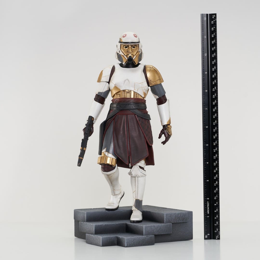 A Gentle Giant LTD release! All rise for Captain Enoch! The captain of the guard for Grand Admiral Thrawn cuts an imposing figure, with his customized gold-faced stormtrooper helmet, and now he is the latest statue in the Premier Collection from Gentle Giant LTD! Measuring approximately 11 inches tall at 1/7 scale, this resin statue is limited to only 2000 pieces, and comes packaged in a full-color box with a numbered certificate of authenticity.