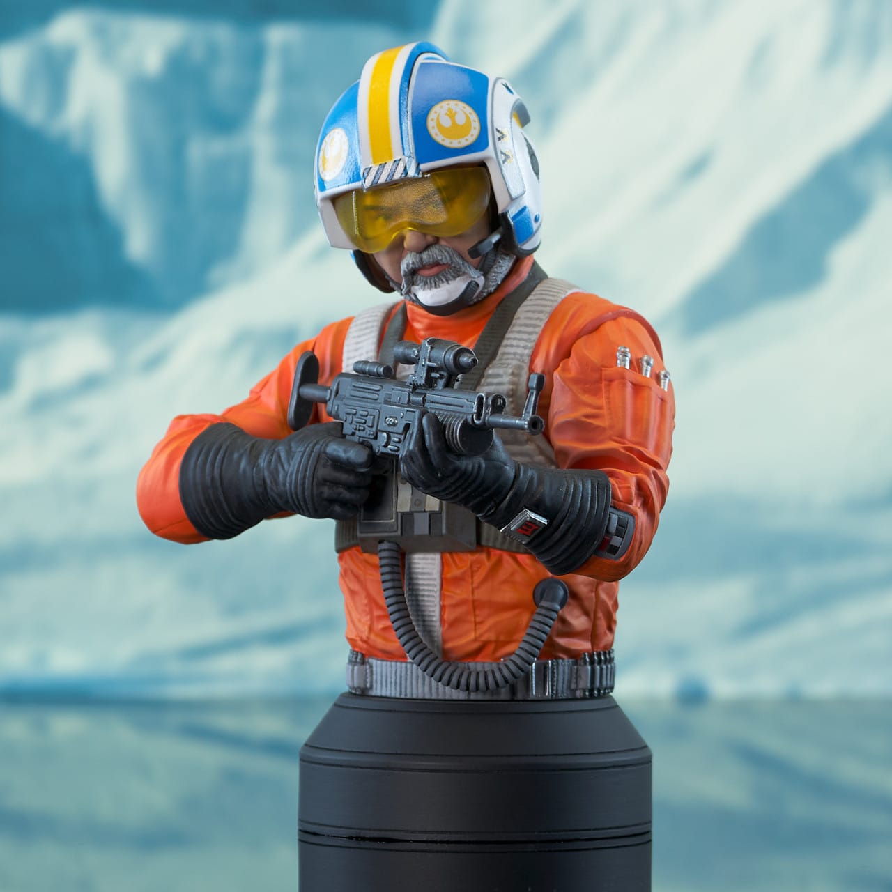 A Gentle Giant LTD release! The Outer Rim pilot who calls himself friend to Din Djarin is now the newest mini-bust from Gentle Giant LTD! Measuring 6 inches tall, Carson wears his orange flight suit with decorated helmet, and levels his blaster as if to pick off some ice spiders. Limited to only 1,000 pieces, it comes packaged in a full-color box with a numbered certificate of authenticity.