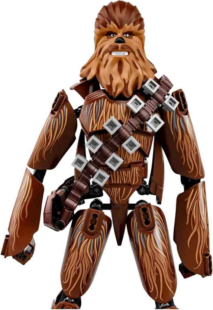 Ergänze deine LEGO® Star Wars Sammlung um einen großen Wookiee. Chewbacca als baubare und äußerst bewegliche Figur darf einfach nicht fehlen. Die Figur ist 30 cm groß, besitzt eine Verzierung, die Chewbaccas „Fell“ darstellt, und einen detailreichen Kopf. Der Gurt mit den Pfeilen und die Tasche können abgenommen werden. Außerdem trägt die Figur einen Bowcaster mit federunterstütztem Shooter und zusätzlichen Pfeilen. Junge Wookiee-Helden werden ihre helle Freude an spannenden Action-Abenteuern haben, bei denen sie das Imperium in die Schranken weisen.