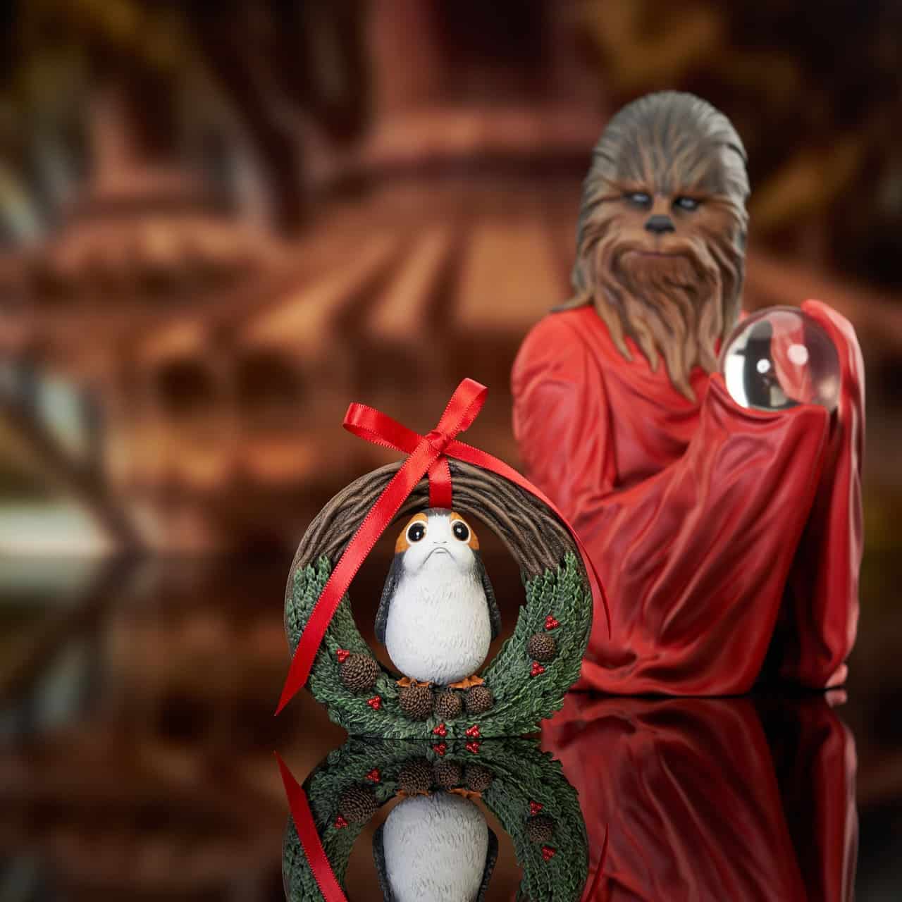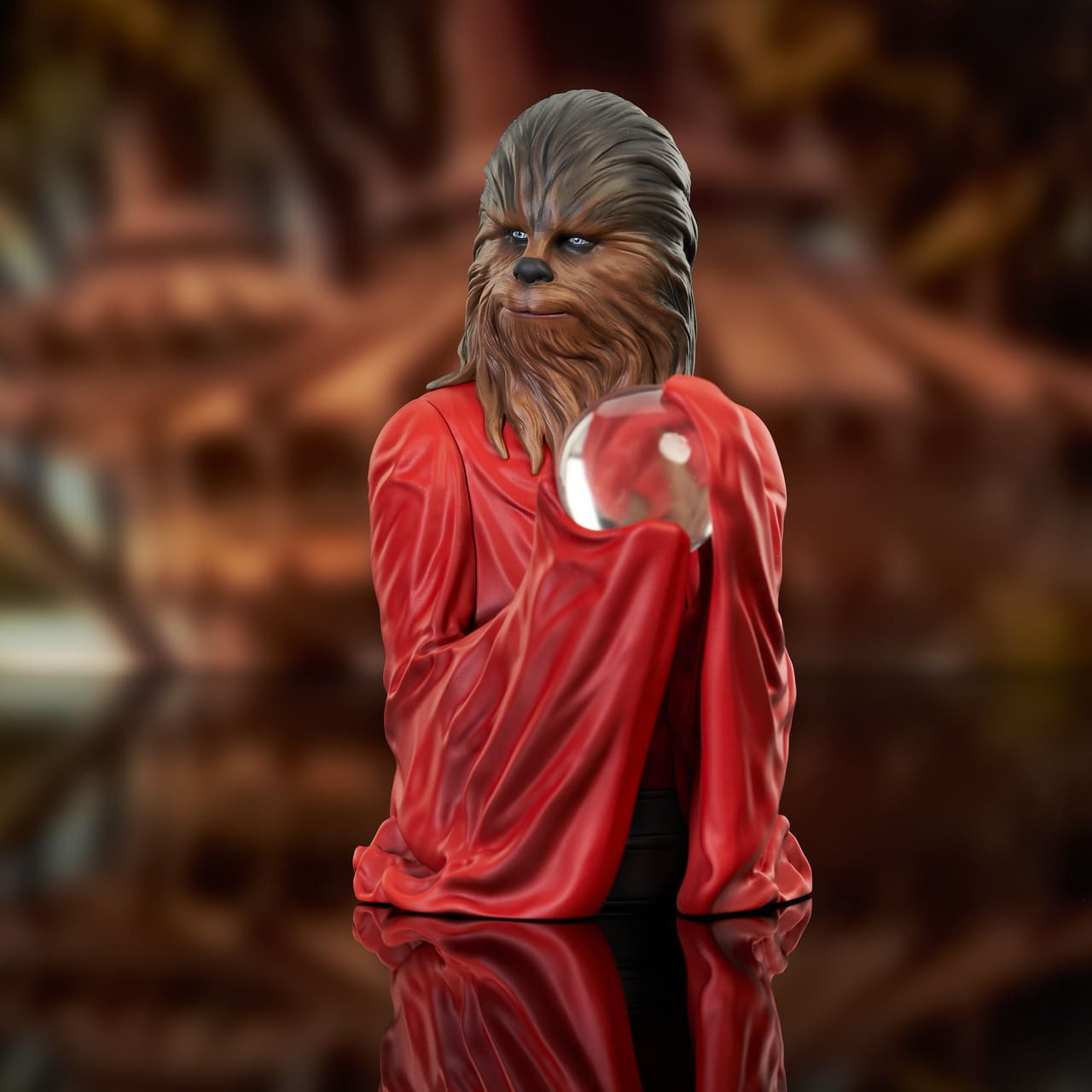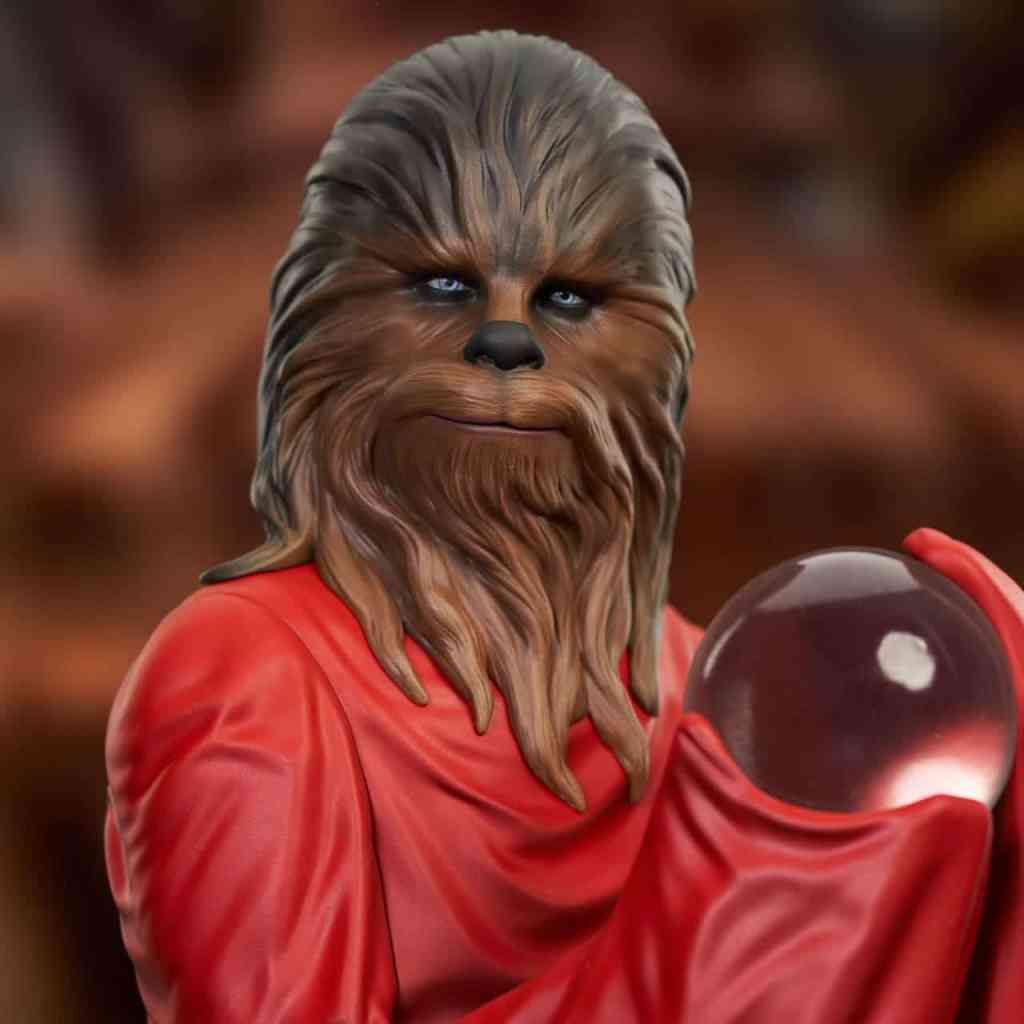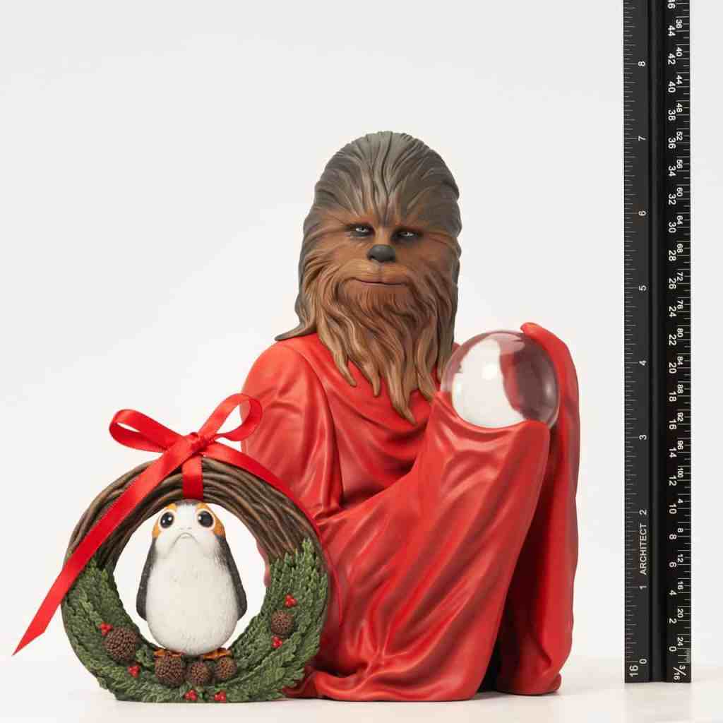 A Gentle Giant LTD release! As the holidays approach, a Star Wars fan’s thoughts turn to Life Day, the ancient Wookiee celebration of family, joy and harmony, which spread across the galaxy in the wake of the Galactic Empire’s defeat. Wearing his Life Day robes and holding a crystalline Life Day Orb, Chewbacca is ready to celebrate in this holiday mini-bust. It measures approximately 7 inches tall, is limited to only 1000 pieces, and comes packaged with a numbered certificate of authenticity in a full-color box.