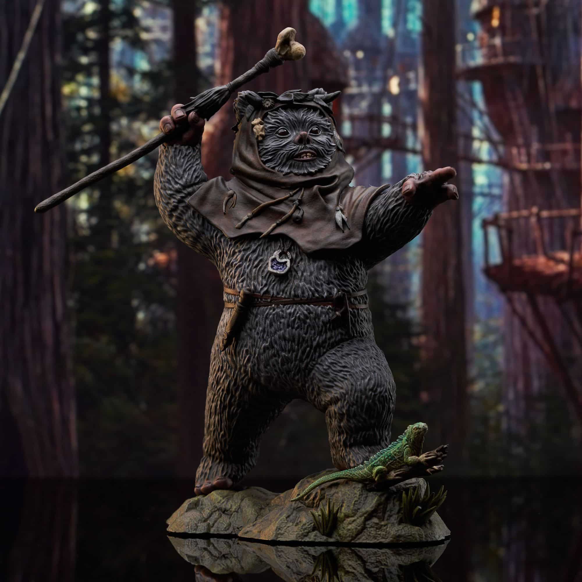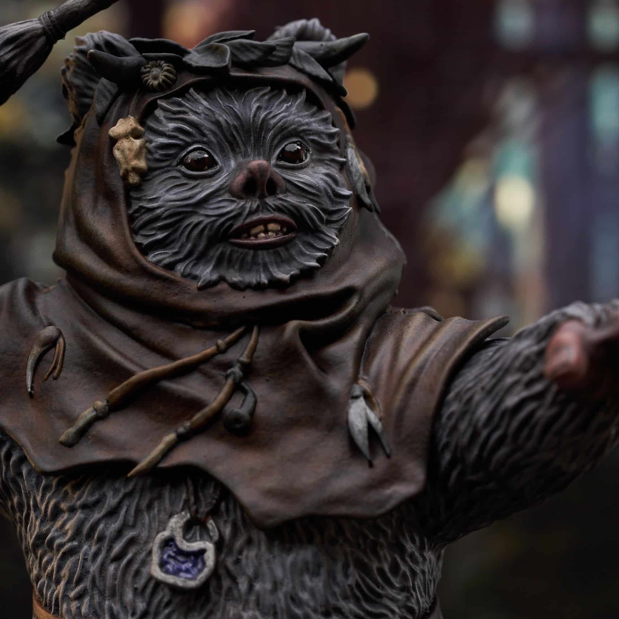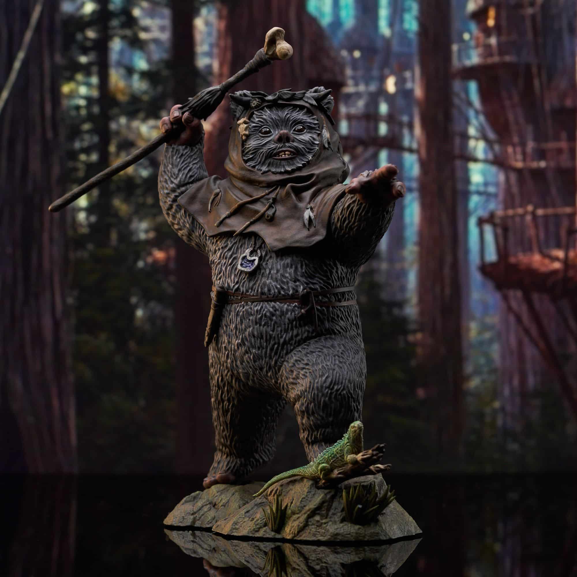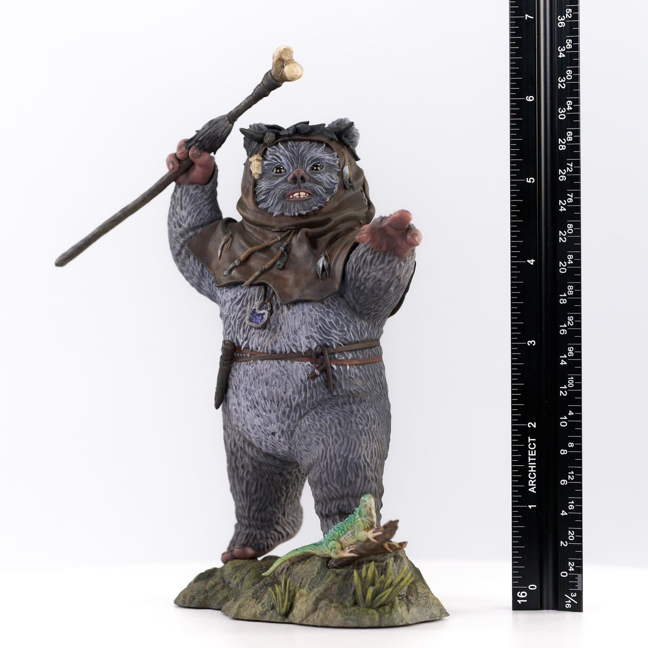A Gentle Giant Ltd. release! Hail to the Chief! The leader of the Ewoks, Chief Chirpa, is the newest 1/6 scale statue in the Gentle Giant Ltd. Milestones collection! Brandishing his ceremonial staff and accompanied by his pet iguana, Chirpa leads the attack on the Empire in this approximately 7-inch resin statue. Limited to only 1000 pieces, it comes packaged in a full-color box with a hand-numbered certificate of authenticity.