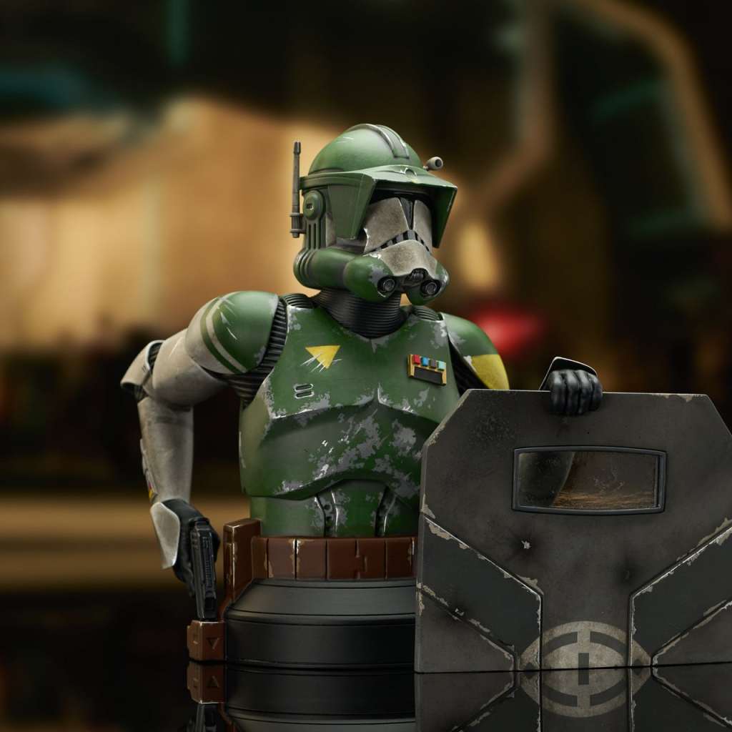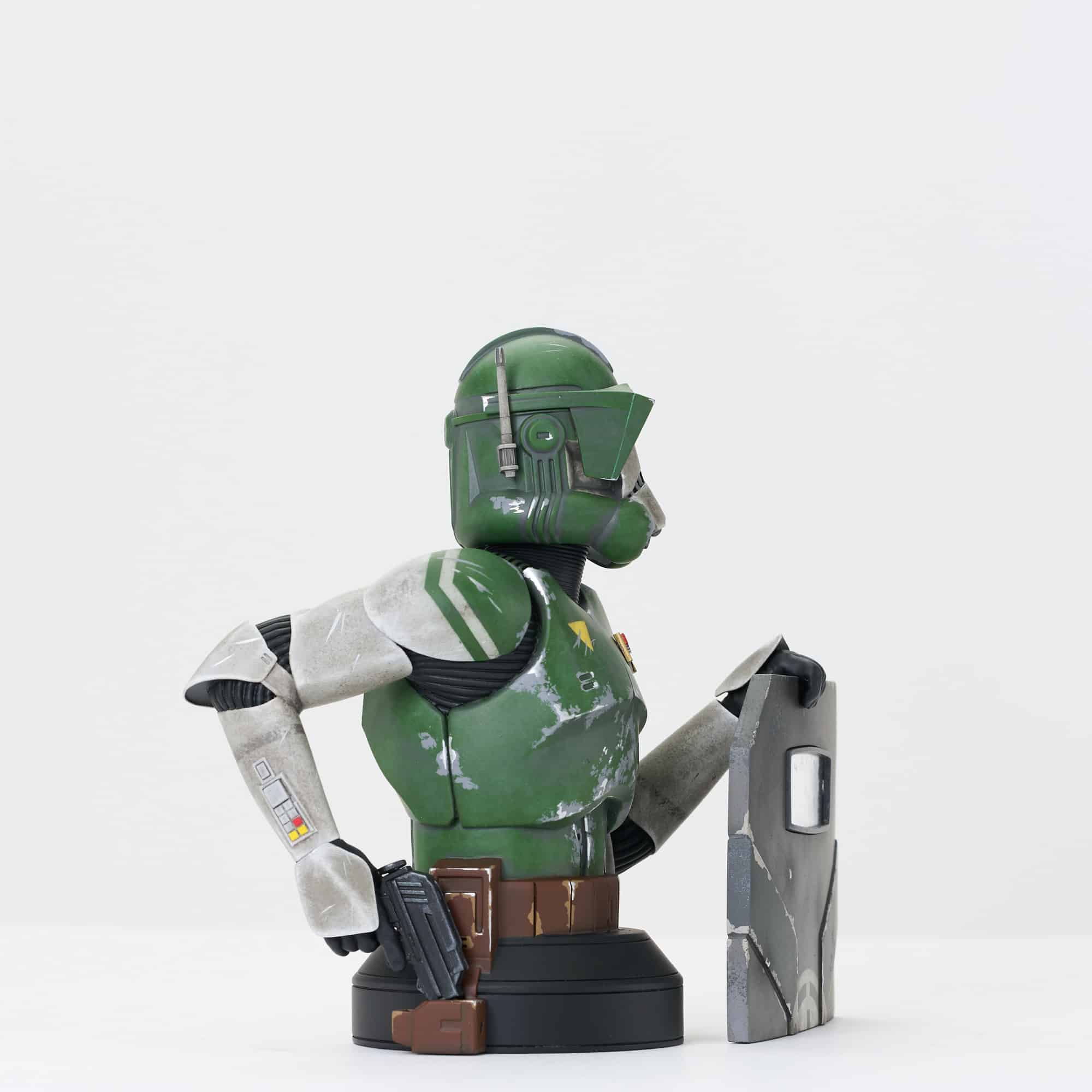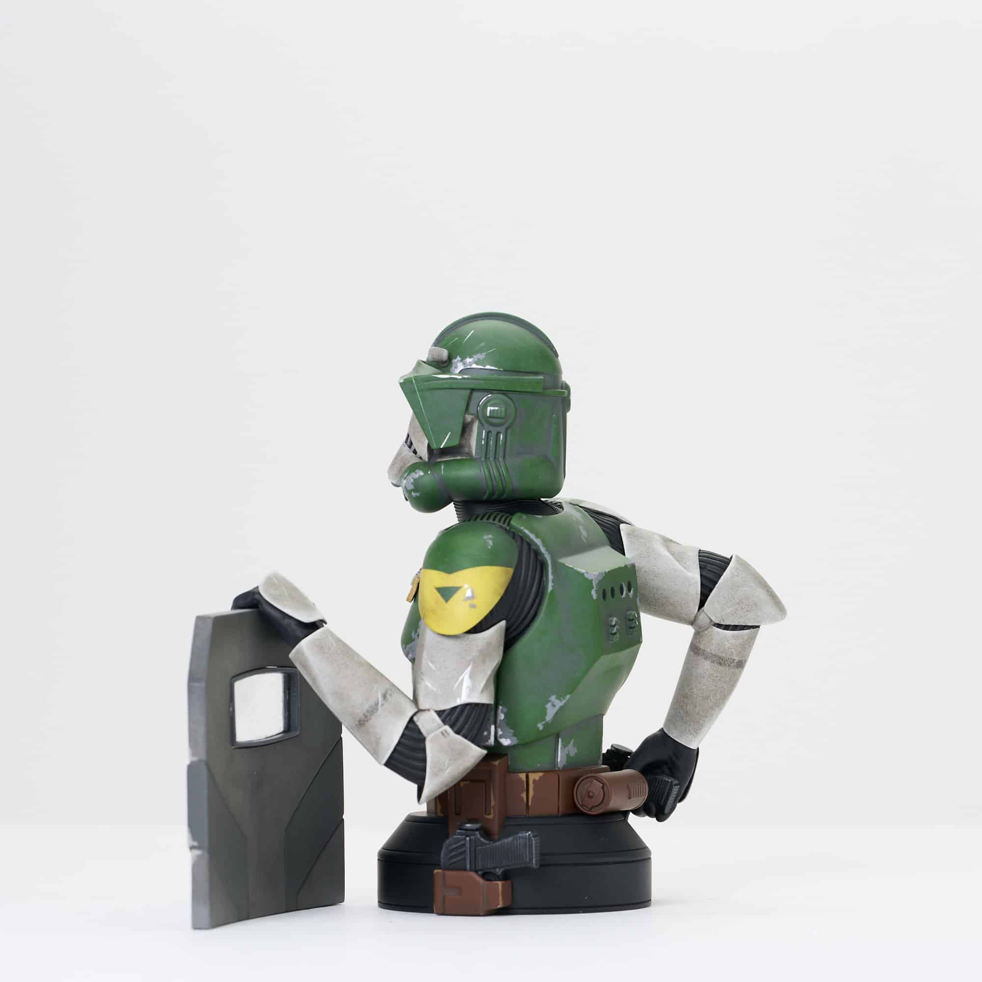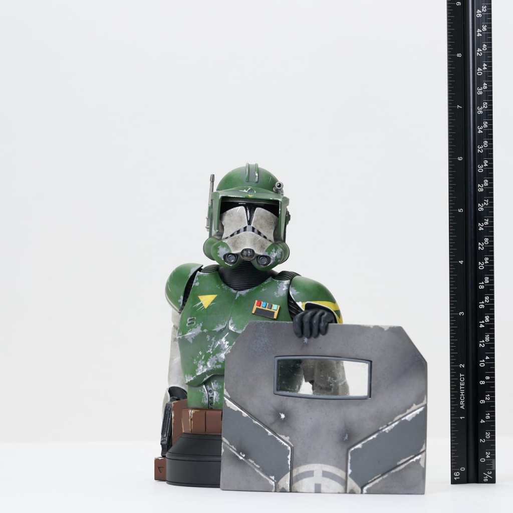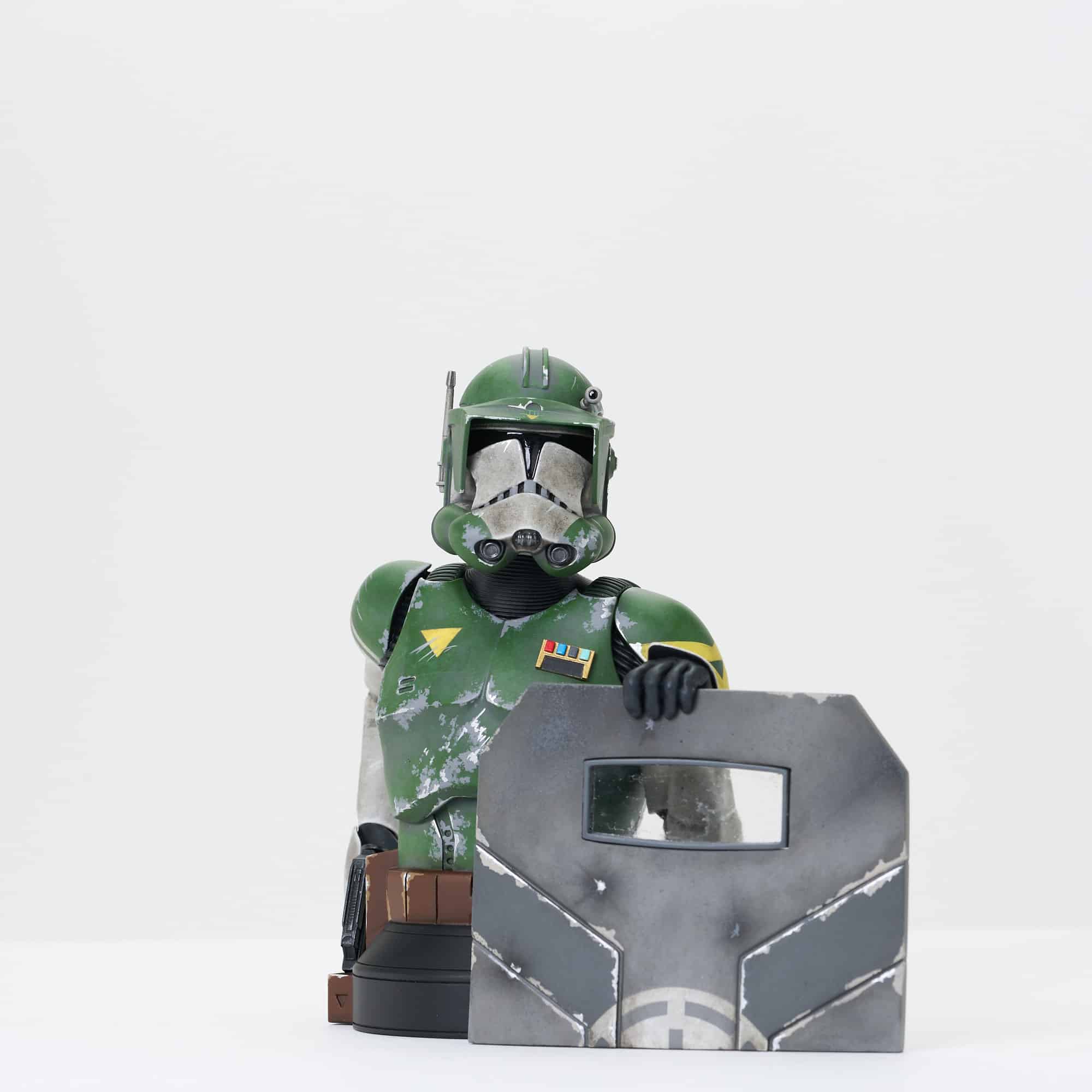 A Gentle Giant, Ltd. release! It’s time for the wearin’ o’ the green! Gentle Giant Ltd. is celebrating St. Patrick’s Day the only way they know how – by finding the greenest unmade Star Wars characters and turning them into 1:6 scale busts! This year, Clone Commander Doom gets the honors, with one hand on the butt of his blaster and the other on a sturdy blast shield! Standing approximately 6 inches tall atop a black pedestal base, this highly detailed resin bust is limited to only 500 pieces, is hand-numbered, and comes packaged in a full-color box with a numbered certificate of authenticity. Exclusively available at gentlegiantltd.com!
