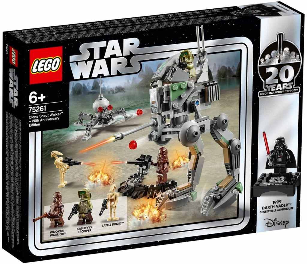 Feiere mit der Sonderedition des LEGO® Star Wars™ Clone Scout Walkers (75261) zum 20. Jubiläum eine herausragende Kollaboration! Dieses actiongeladene Konstruktionsspielzeug erscheint zur Feier des 20. Jubiläums der LEGO Star Wars Spielsets. Es umfasst ein aktualisiertes Modell des Clone Scout Walkers (7250) von 2005 mit beweglichen Beinen, einem drehbaren Geschützturm, Platz für die Minifigur des Kashyyyk-Trupplers auf dem Walker und einen Shooter. Dieses coole Set enthält außerdem eine LEGO Spinnendroidenfigur mit Shooter, einen Schützengraben mit Shooter sowie eine Bonus-Minifigur von Darth Vader aus dem Jahr 1999 auf einer limitierten Präsentationsplatte.