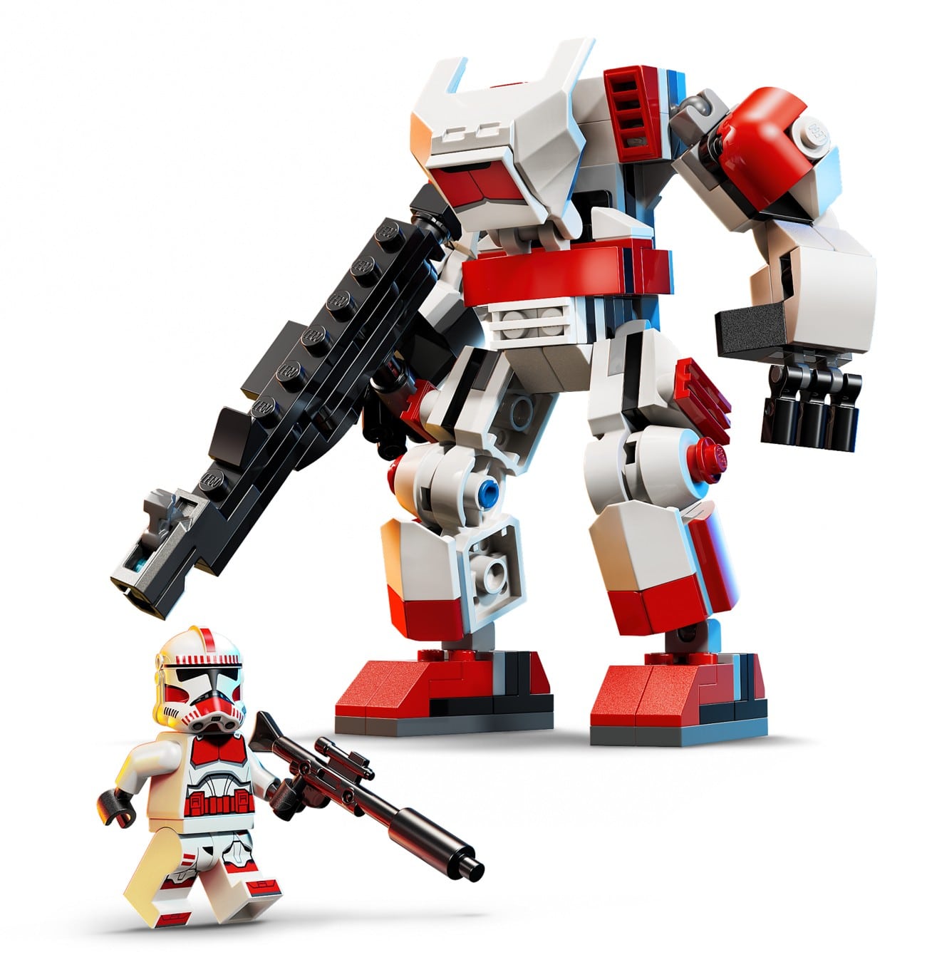 Der Klon-Schocktruppen Mech (75448) stellt jungen Kindern das spannende LEGO® Star Wars™ Universum vor. Der bewegliche Mech für Kinder und Star Wars Fans ab 6 Jahren lässt sich leicht zusammenstecken, damit der Spielspaß mit der Actionfigur sofortbeginnen kann. Steck den Clone Shock Trooper ins Cockpit und befestige das Blastergewehr der LEGO Minifigur am Rücken des Mechs. Bring Arme, Beine und Füße des Mechs in starke Actionposen. Steck dem Mech das große Blastergewehr in die Greifhände und ak tiviere die Shooter-Funktion. Nach dem Spielen wird der Mech in den rot-weißen Farben der Clone Shock Troopers zum coolen Hingucker in jedem Kinderzimmer. Die Actionfigur aus diesem Bau- und Spielset gehört zur Sammelserie separat erhältlicher LEGO Star Wars Mechs. Die verständlichen digitalen Bauanleitungen in der LEGO Builder App lassen Kinder selbstbewusst bauen. Baufans können in der App 3D-Modelle betrachten und sich anschauen, wie weit sie mit ihrem Modell schon sind. Das Set besteht aus 151 Teilen.