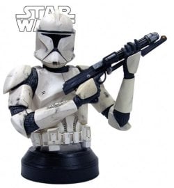 A Clone Trooper leaps off the screen and into your hands with this limited-edition Mini-Bust. This product is an authentic, licensed collectible designed and developed by Gentle Giant Studios.