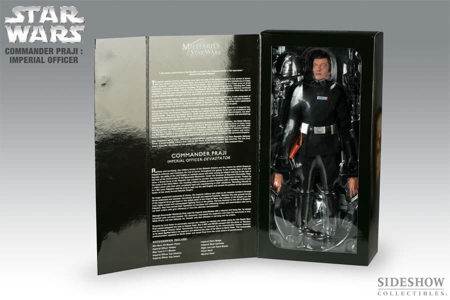 The 12-inch Commander Praji figure includes: