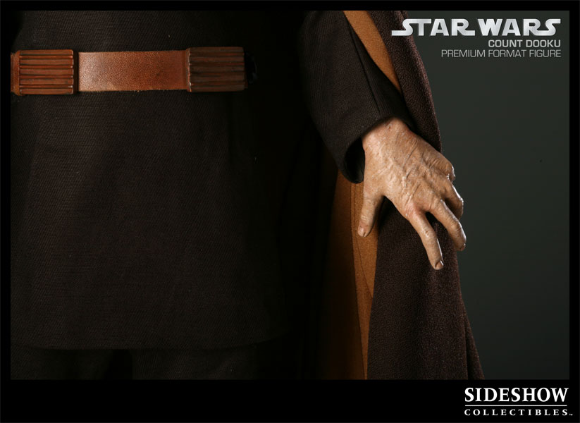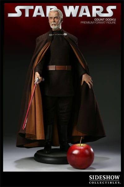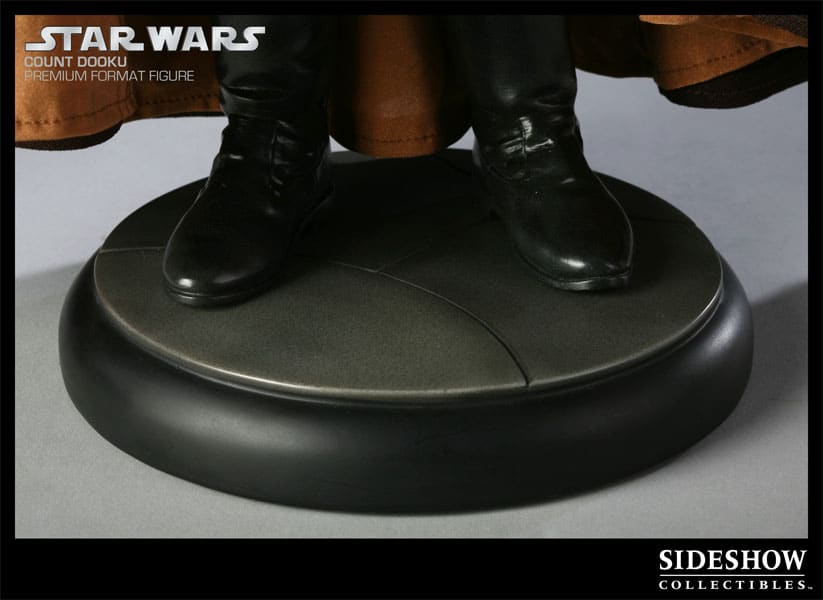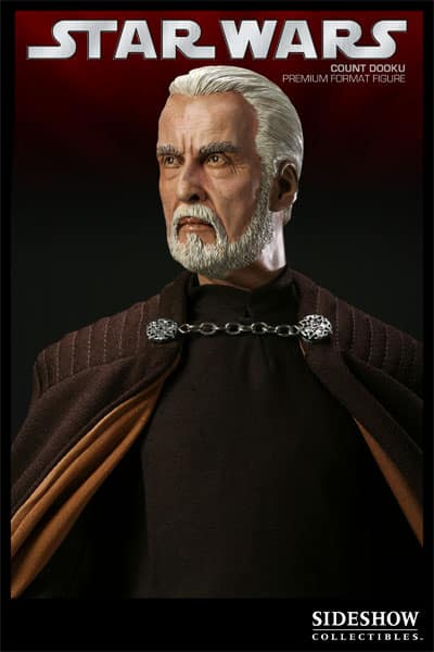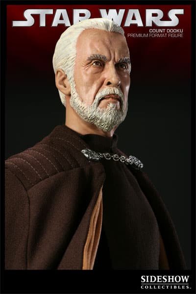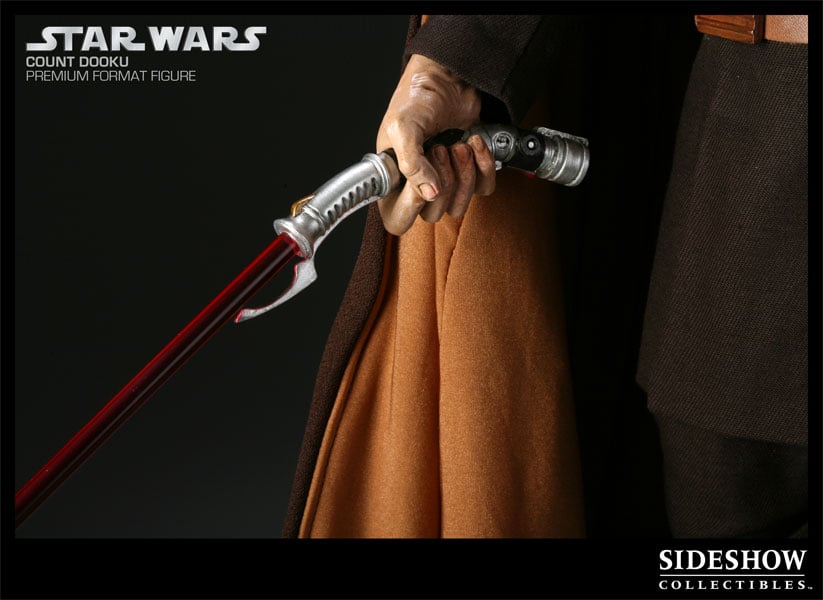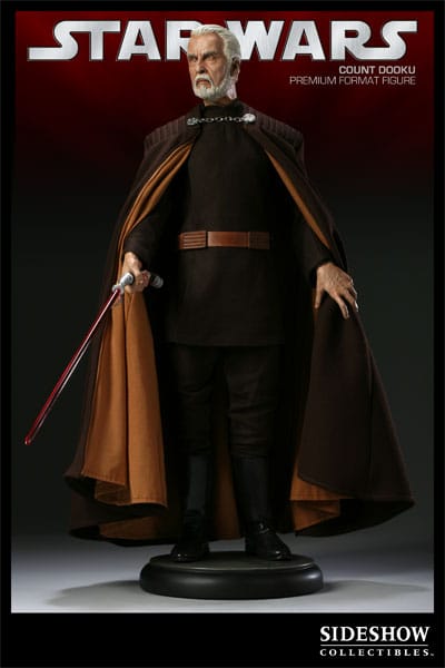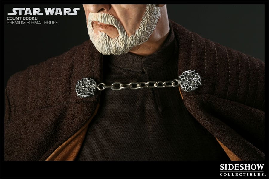The Count Dooku Premium Format figure captures every detail of the corrupted former Jedi, standing confidently with his uniquely curved lightsaber drawn. Each piece is individually painted and finished to exacting standards, each with its own unique quality and detail that is the trademark of a handcrafted Sideshow Collectibles Premium Format Figure. The figure is dressed in an incredibly detailed, hand-tailored fabric costume, and the cape is complete with a real metal chain and wired hem for posability. The Count Dooku Premium Format figure is a stunning addition to any Star Wars collection, an outstanding piece for display.