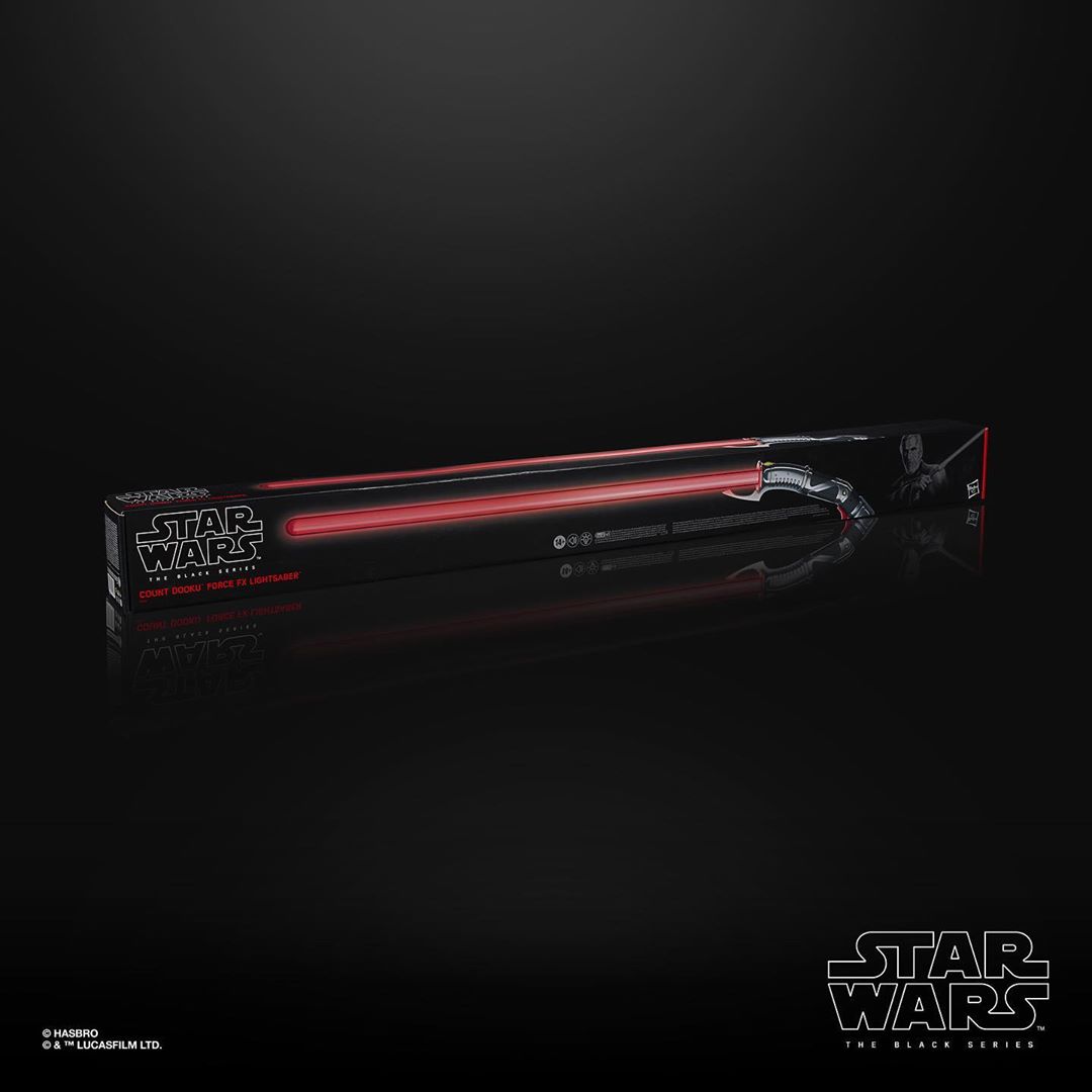 In der Star Wars Saga war Count Dookus rotes Lichtschwert eine elegante Waffe für edle Herren. Sein anmutiger gebogener Griff ermöglichte es Dooku, äußerst präzise zuzuschlagen. Fans können die größten Momente und Missionen der Star Wars Saga mit Lichtschwertern aus der Black Series nachspielen (jeweils separat erhältlich. Je nach Verfügbarkeit.) Mit besonderen Funktionen und einem tollen Design verkörpert diese Serie die Qualität und Authentizität, die Star Wars Fans lieben. Das Force FX Lichtschwert verfügt über eine LED-Technologie, klassische Lichtschwert-Soundeffekte und einen echten Metallgriff und lädt dazu ein, die spannende Star Wars Action nachzuspielen.